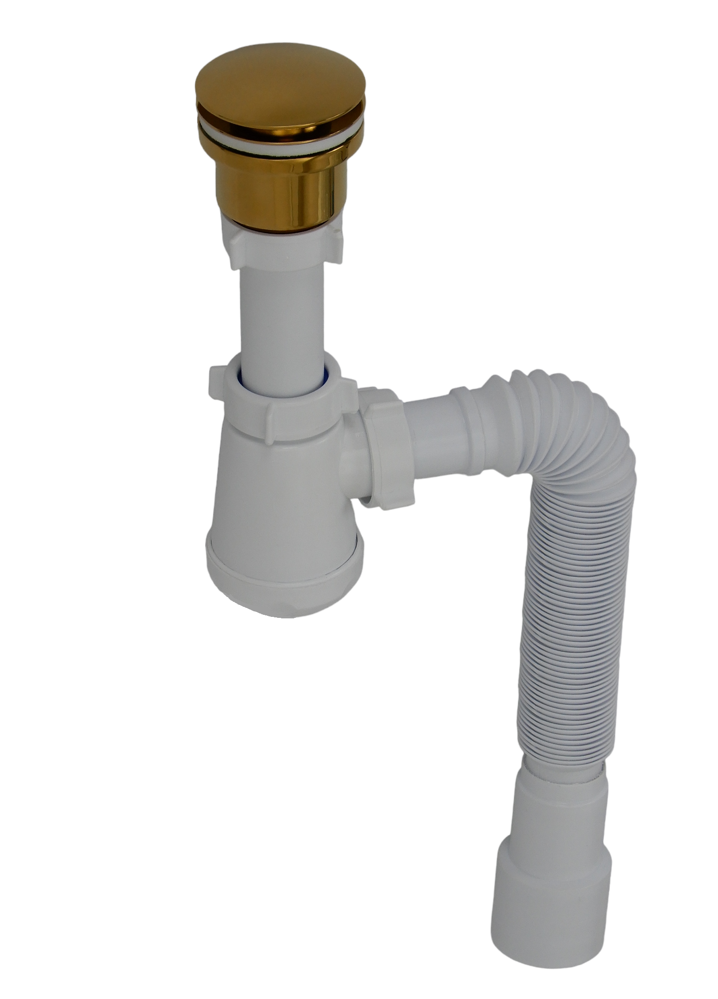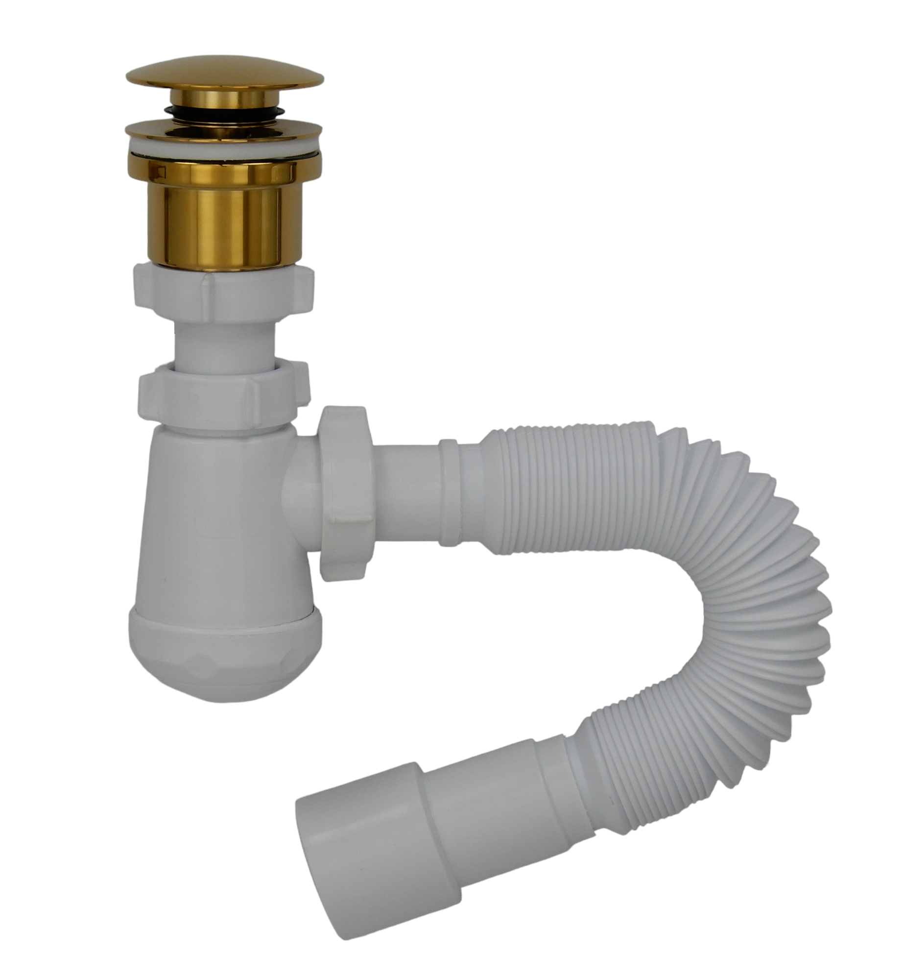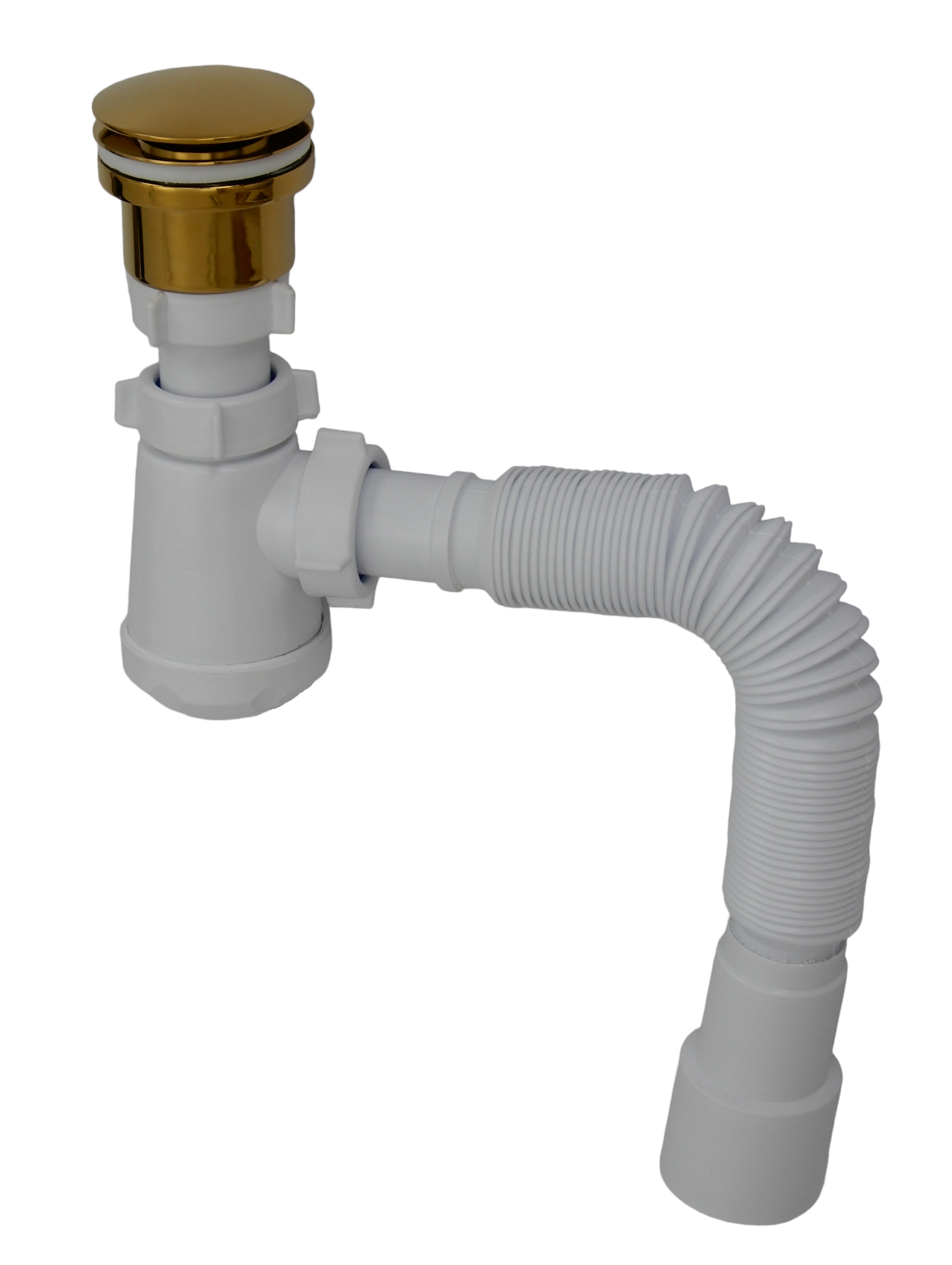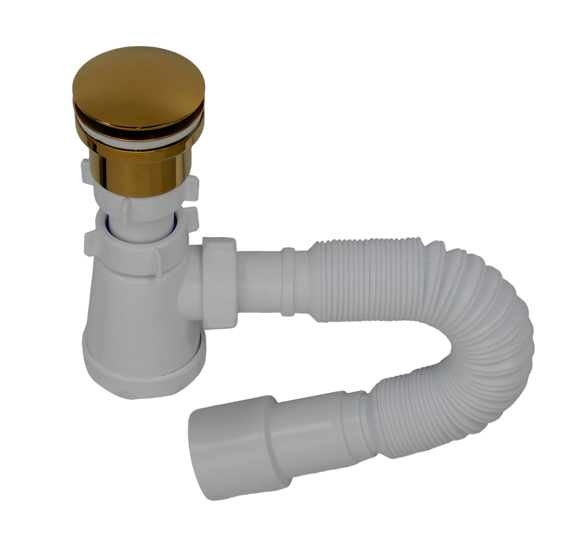 Купить Мини сифон для раковины и универсальный донный клапан золотой КН087