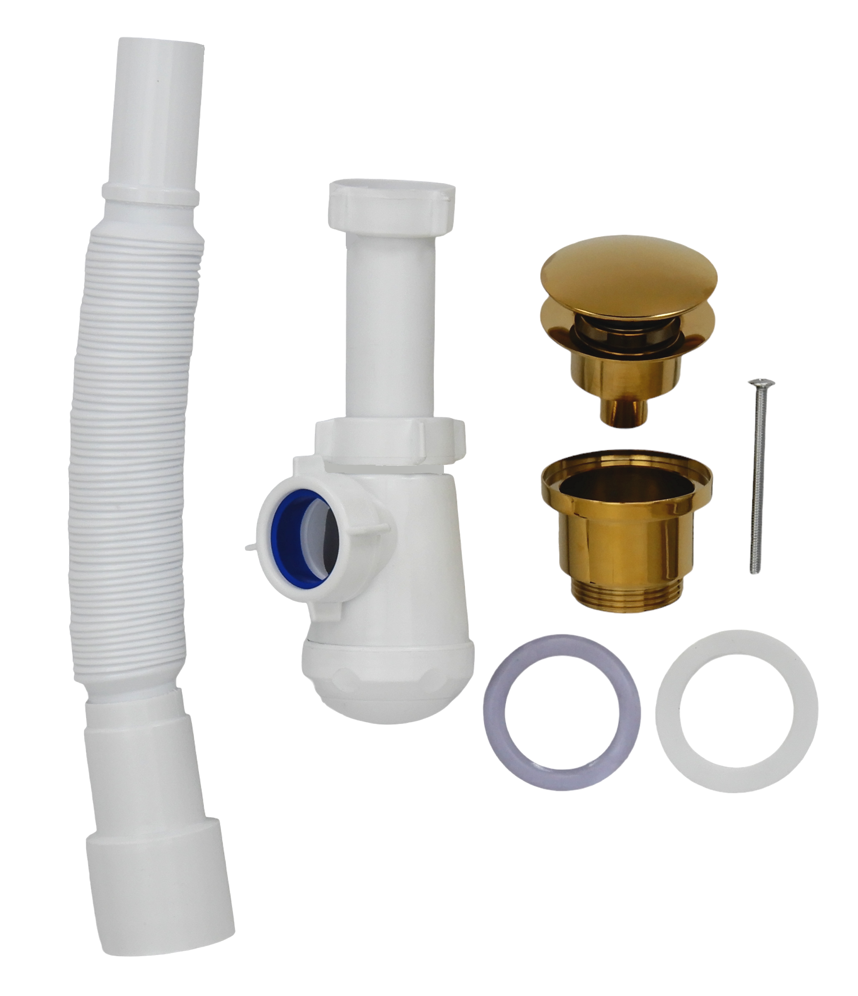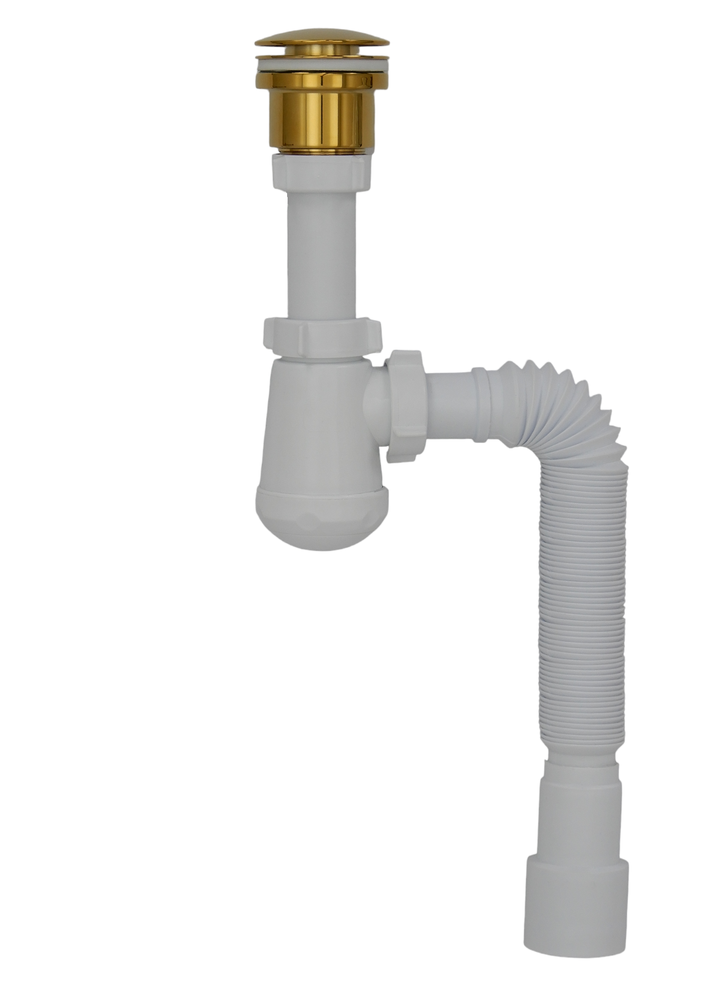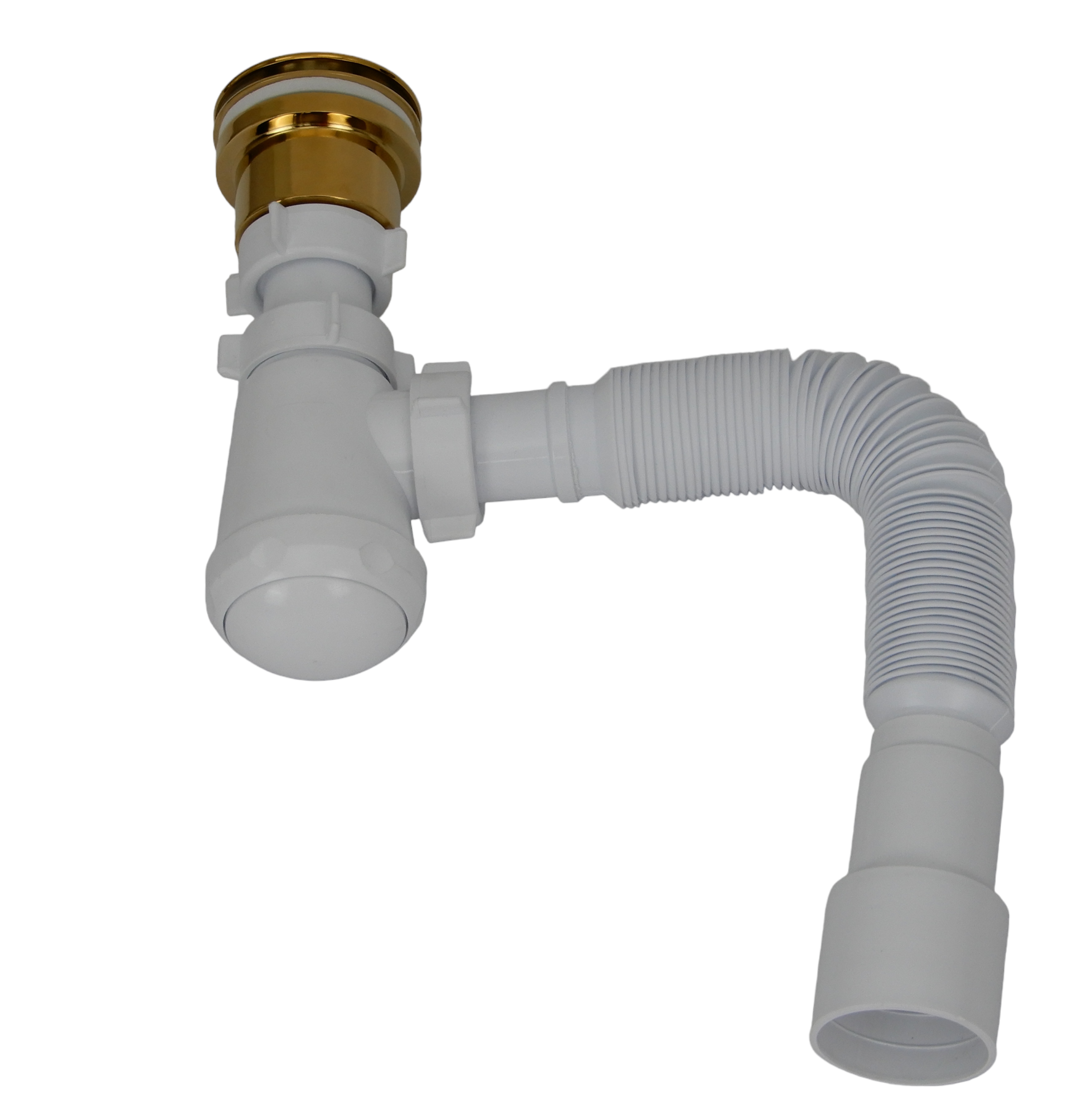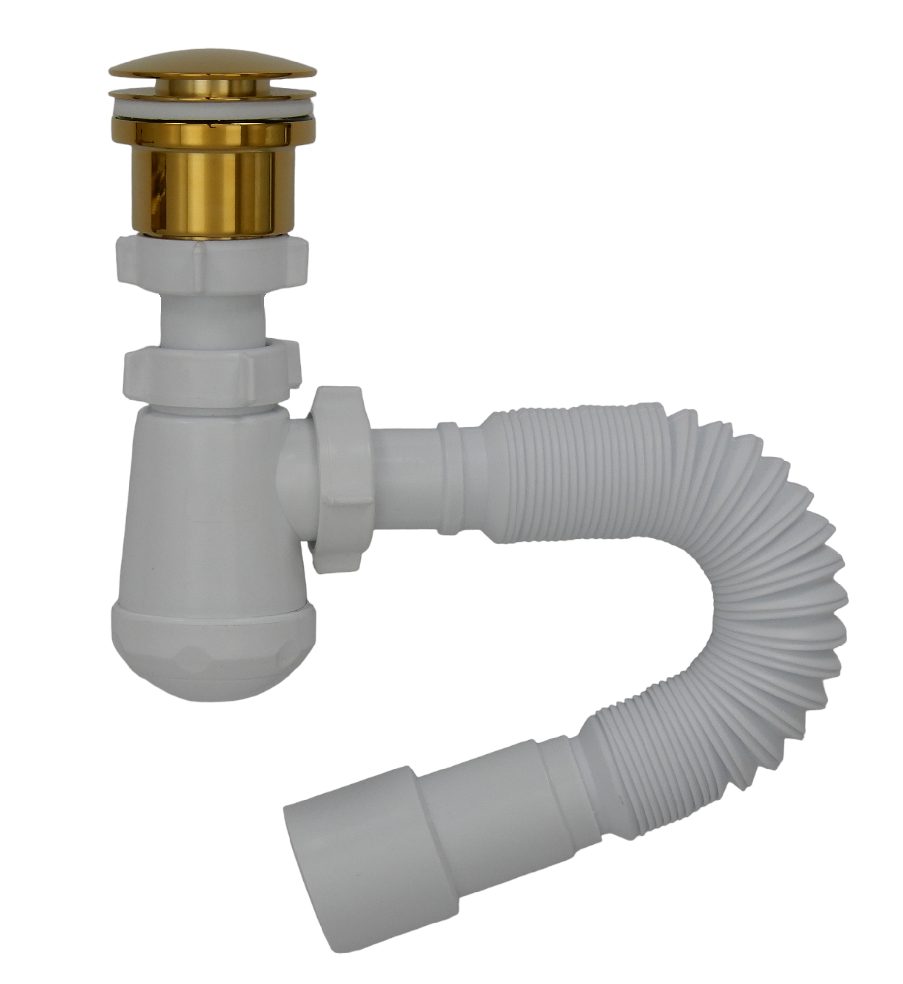Купить Мини сифон для раковины и универсальный донный клапан золотой КН087