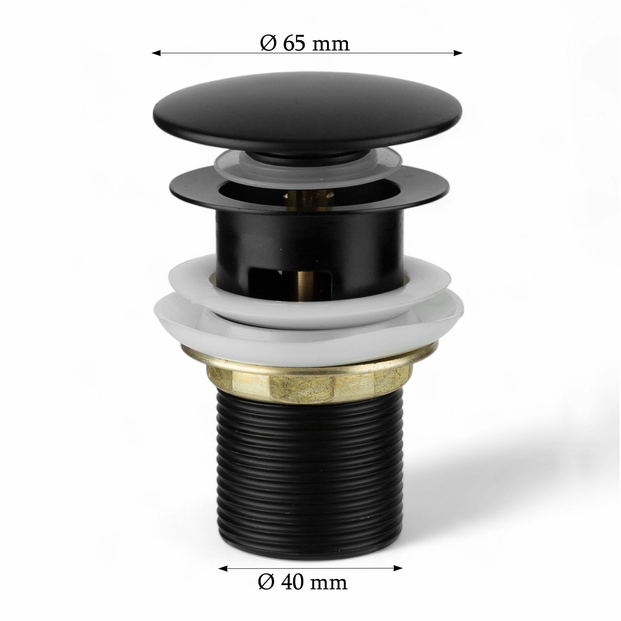 Донный клапан с переливом, click-clack диаметр 65 мм, черный матовый интересное: