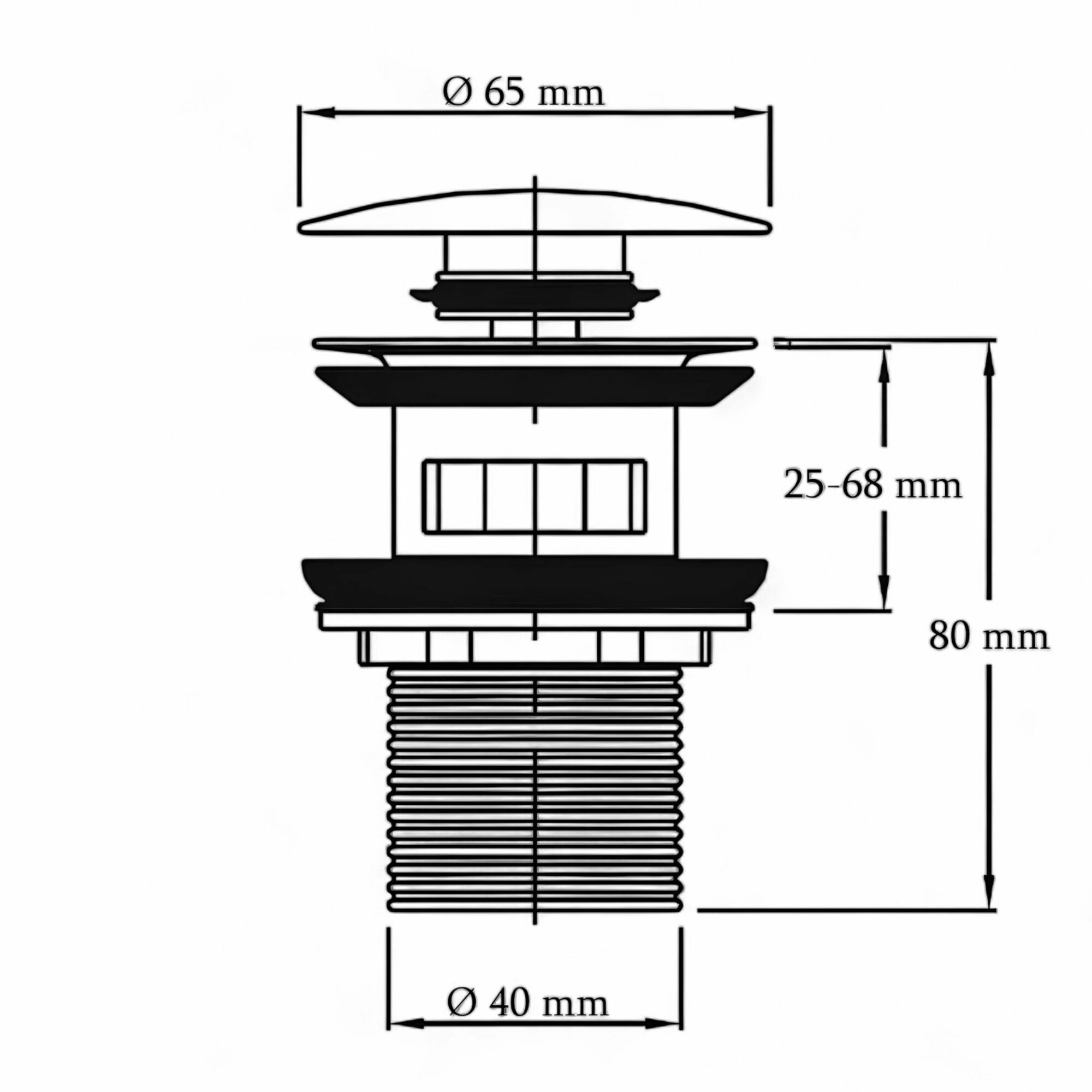 Донный клапан с переливом, click-clack диаметр 65 мм, черный матовый