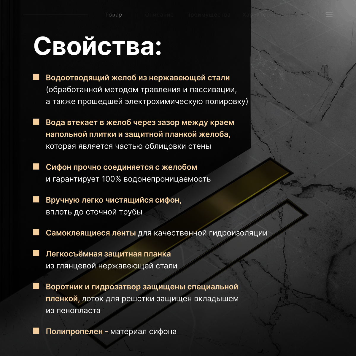 СохранитьТрап душевой BAD488002GP с горизонтальным выпуском из нержавеющей стали сухой+гидрозатвор 70х800 мм, цвет глянцевое золото интересное: