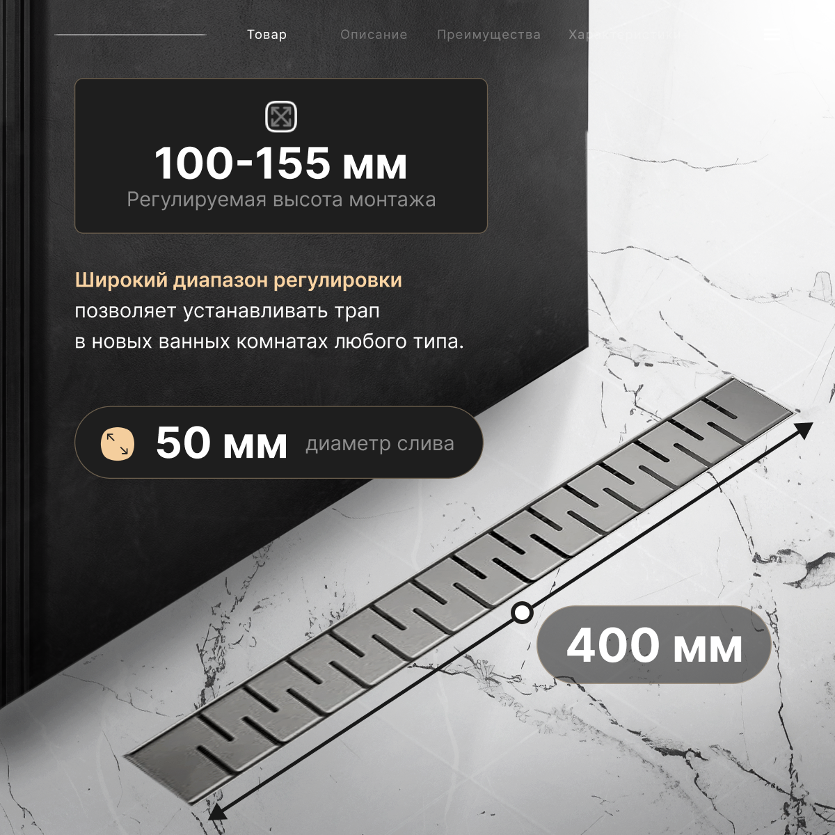 СохранитьТрап душевой BAD474002GY с горизонтальным выпуском из нержавеющей стали сухой+гидрозатвор 70х400 мм, цвет вороненая сталь интересное: