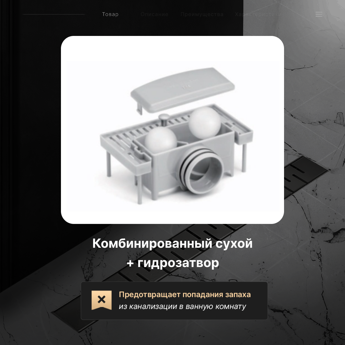 Трап - лоток для душа водоотводящий желоб душевой с гидрозатвором и сухим затвором решетка Темно-серый металлик 50 см TIM артикул BAD475002GY