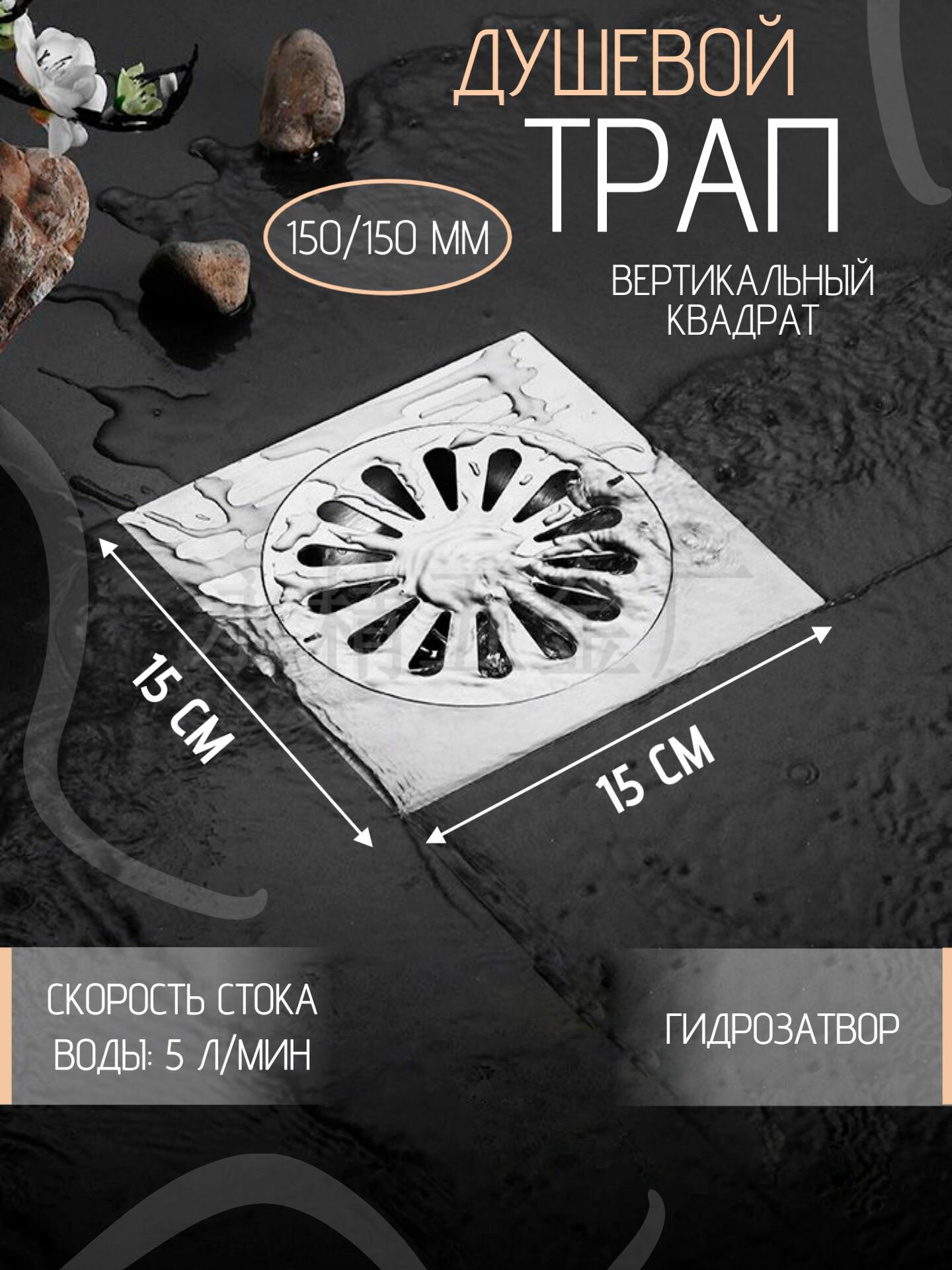 СохранитьТрап для душа вертикальный квадрат с гидрозатвором 150*150мм /15*15см TIM BAD021501 интересное: