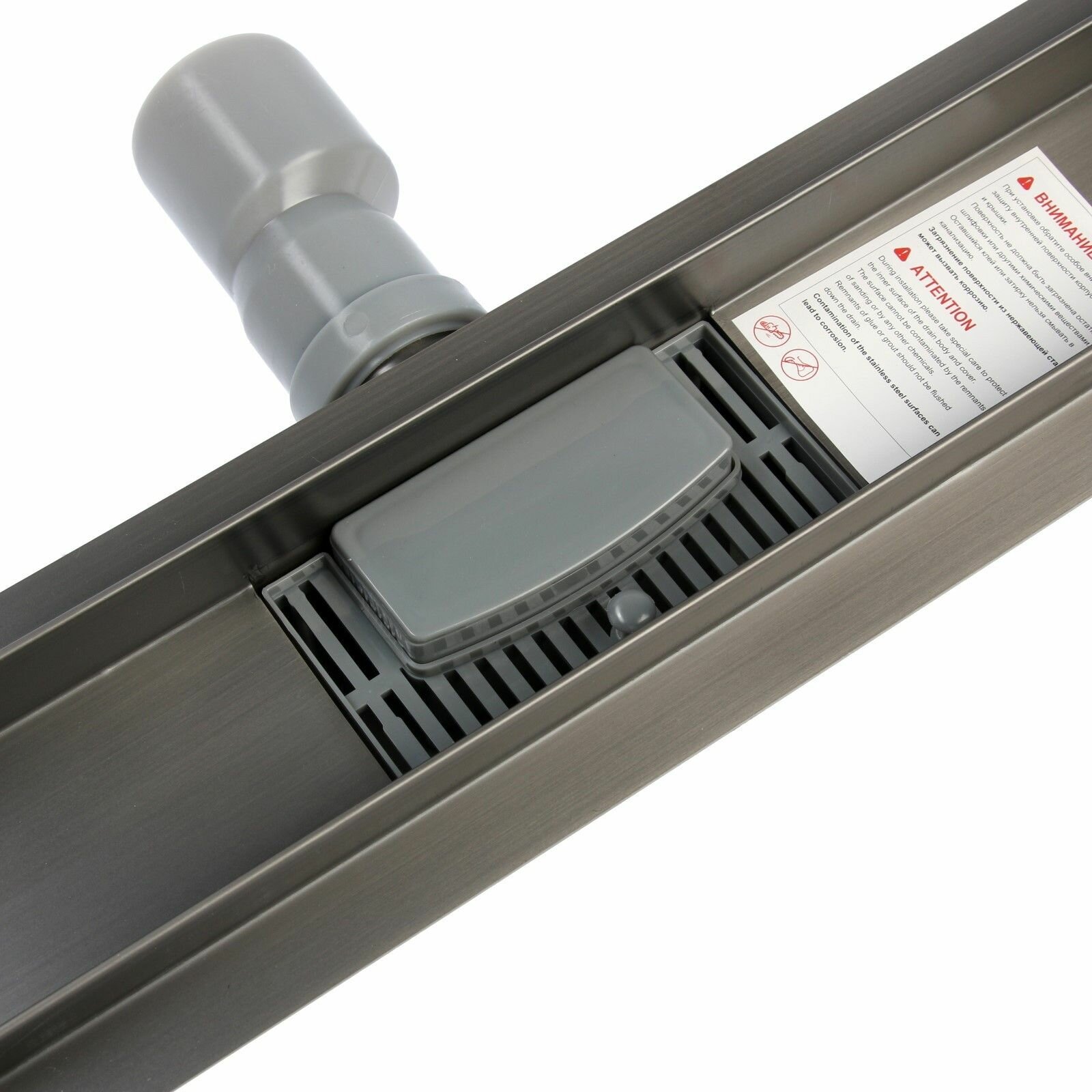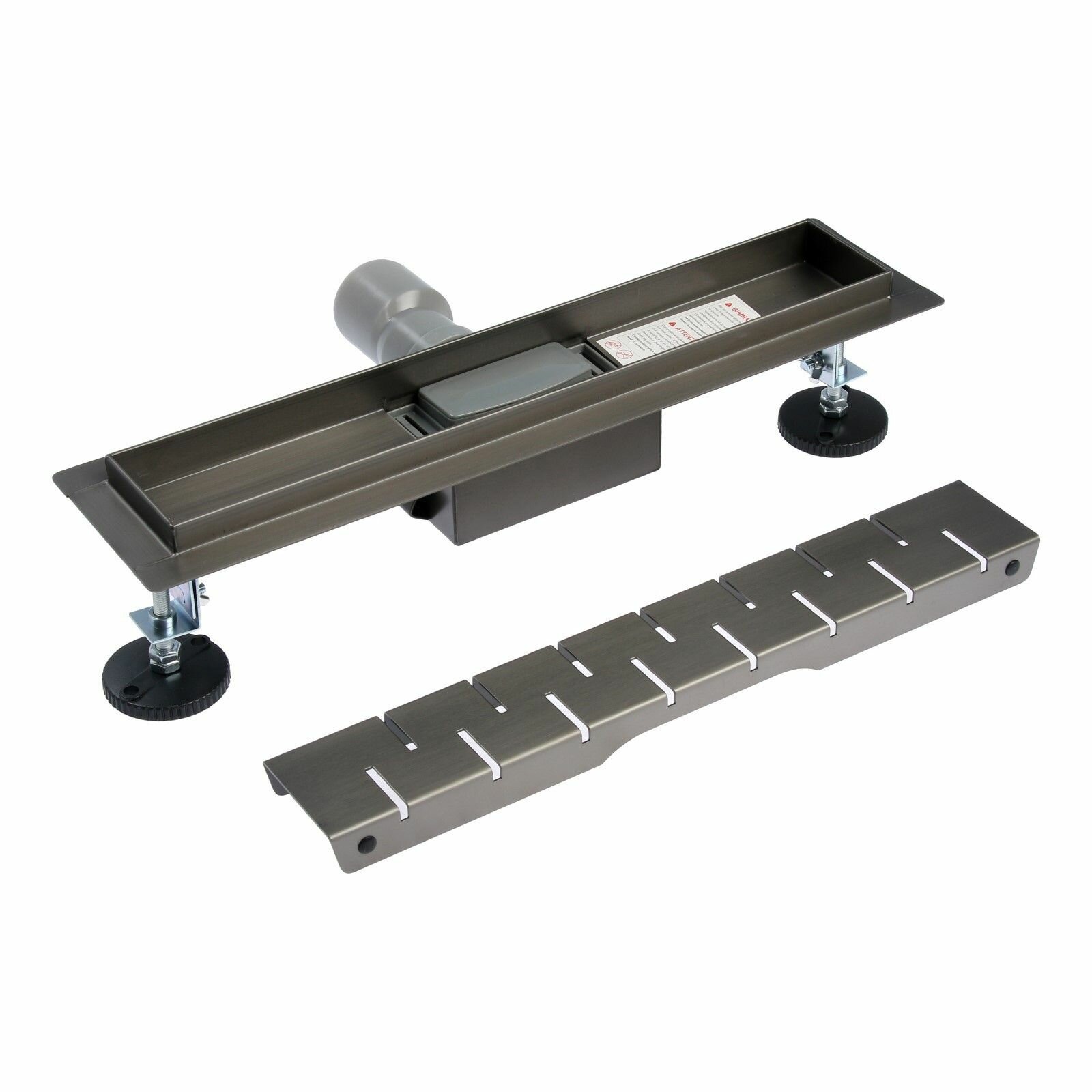 Трап душевой 70х600 мм BAD476002GY из нержавеющей стали, сухой+гидрозатвор, цвет вороненая сталь
