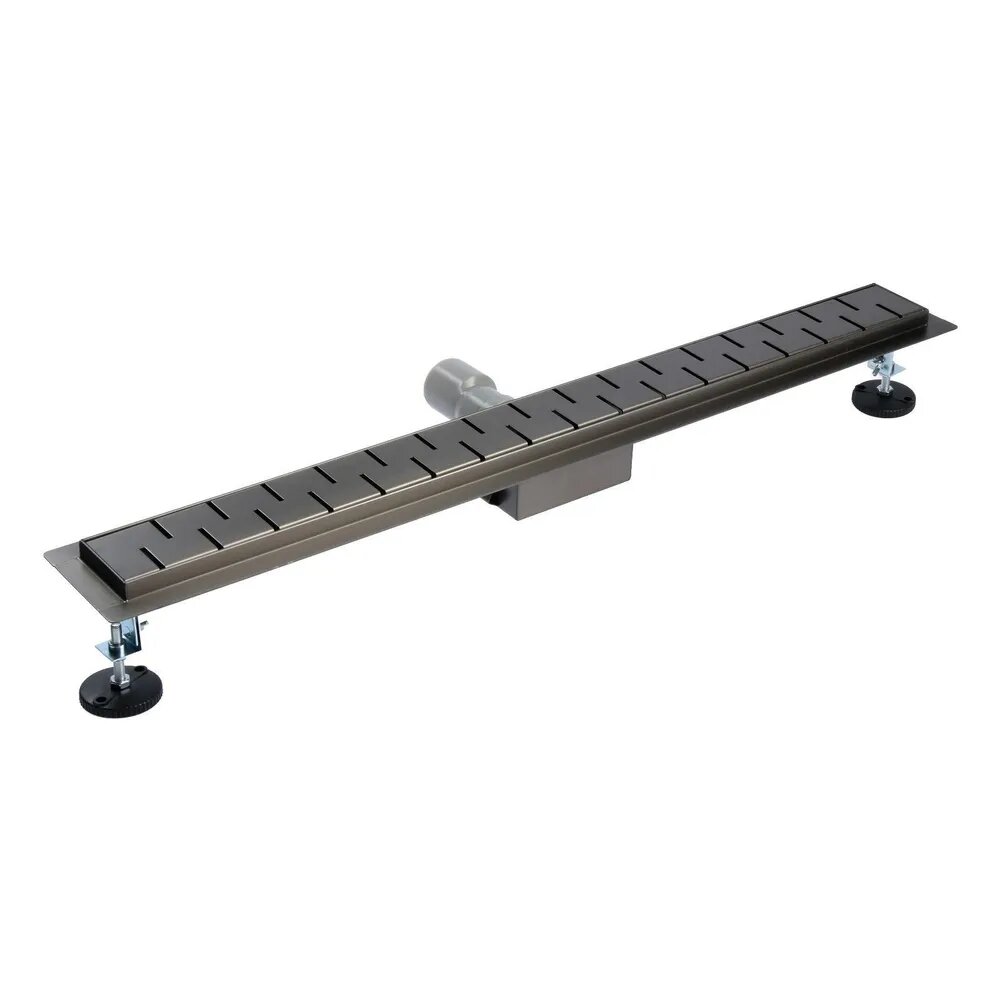 Трап для душа с горизонтальным выпуском TIM, размер 600 x 70мм, защита от запаха, цвет Вороненая сталь