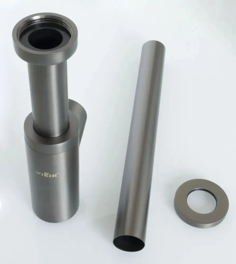 Сифон дизайнерский для раковины бутылочный металлический, черный-матовый Vieir VRQ34C