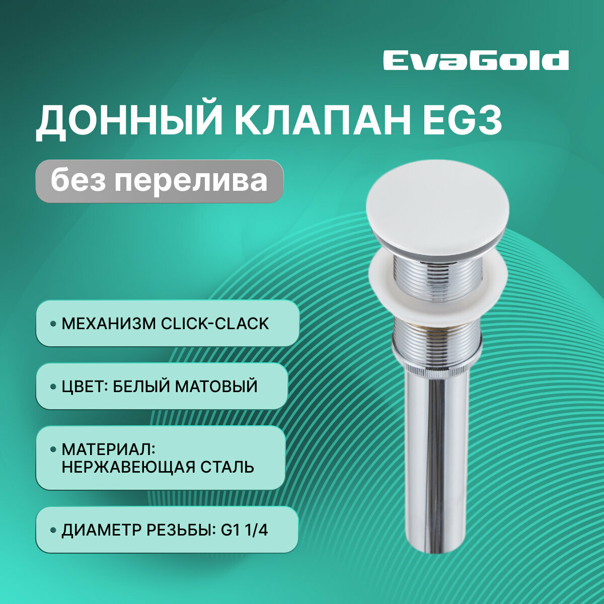 Донный клапан для раковины EvaGold EG3 белый матовый без перелива интересное: