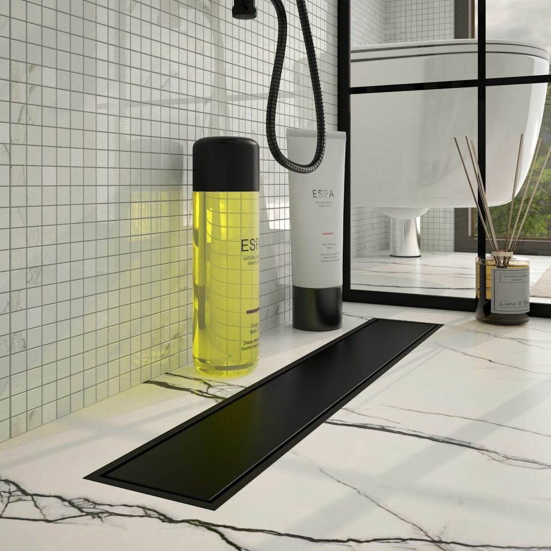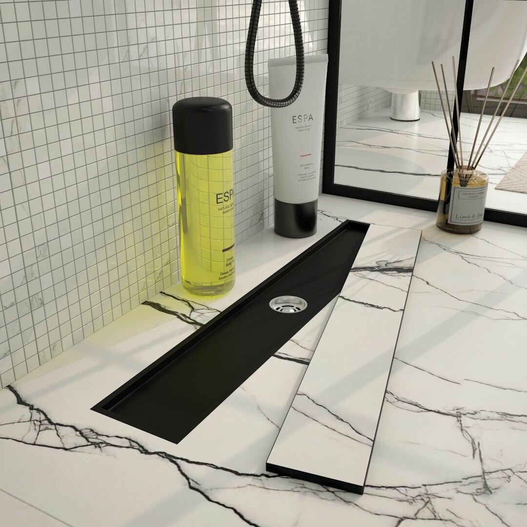 Трап для душа под плитку с сухим затвором вертикальный выпуск Teymi Aina 10х80 черный T90360