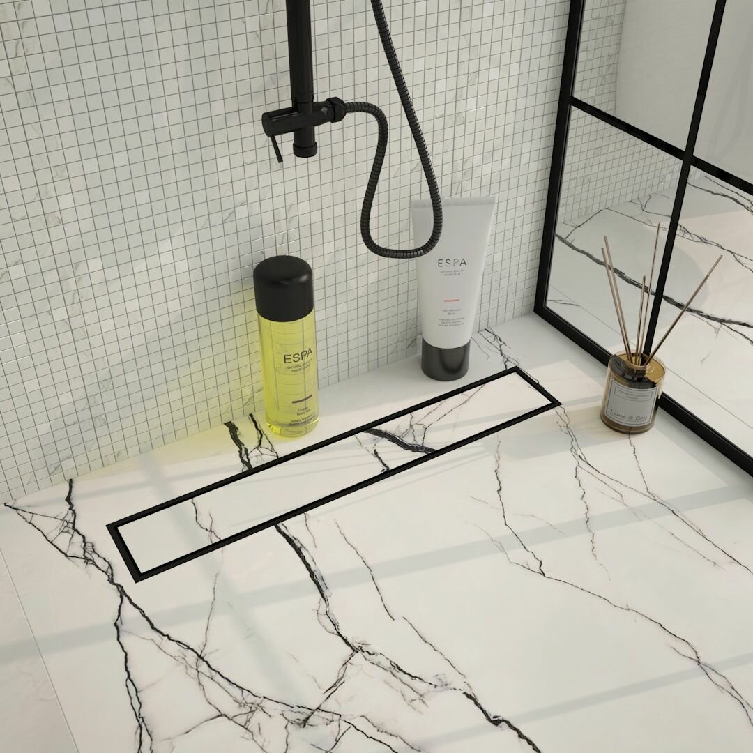 Трап для душа под плитку с сухим затвором вертикальный выпуск Teymi Aina 10х50 черный T90356