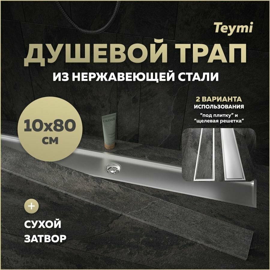 СохранитьТрап для душа под плитку с сухим затвором вертикальный выпуск Teymi Aina 10х80 нержавеющая сталь T90361 интересное: