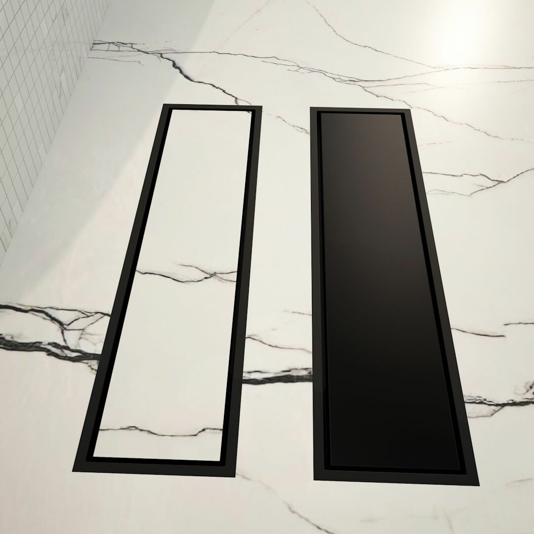 Трап для душа под плитку с сухим затвором вертикальный выпуск Teymi Aina 10х60 черный T90358
