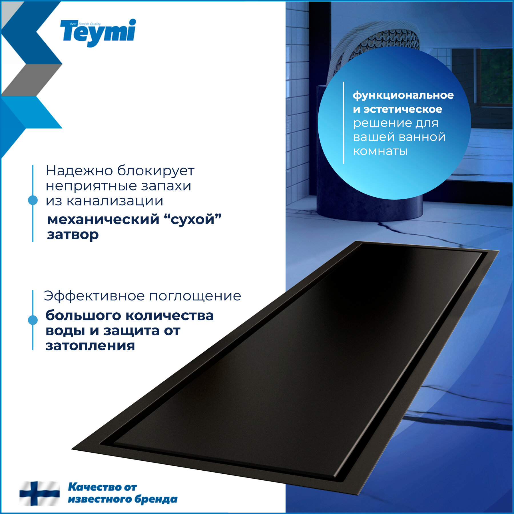 СохранитьТрап для душа под плитку с сухим затвором вертикальный выпуск Teymi Aina 10х40 черный T90354 интересное: