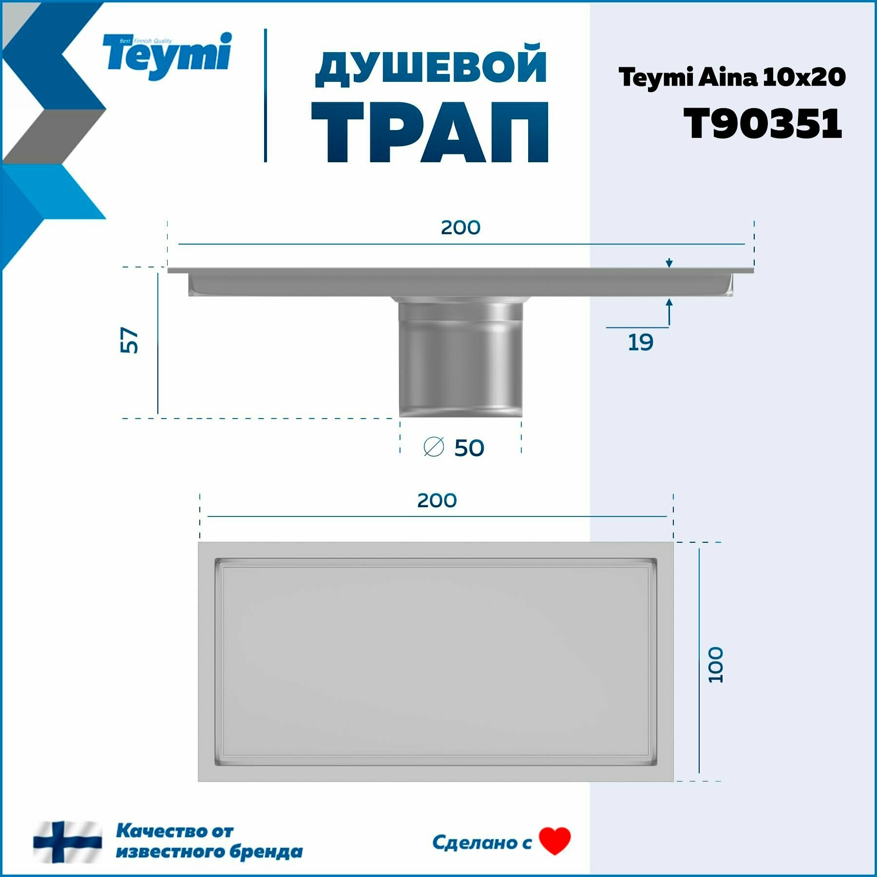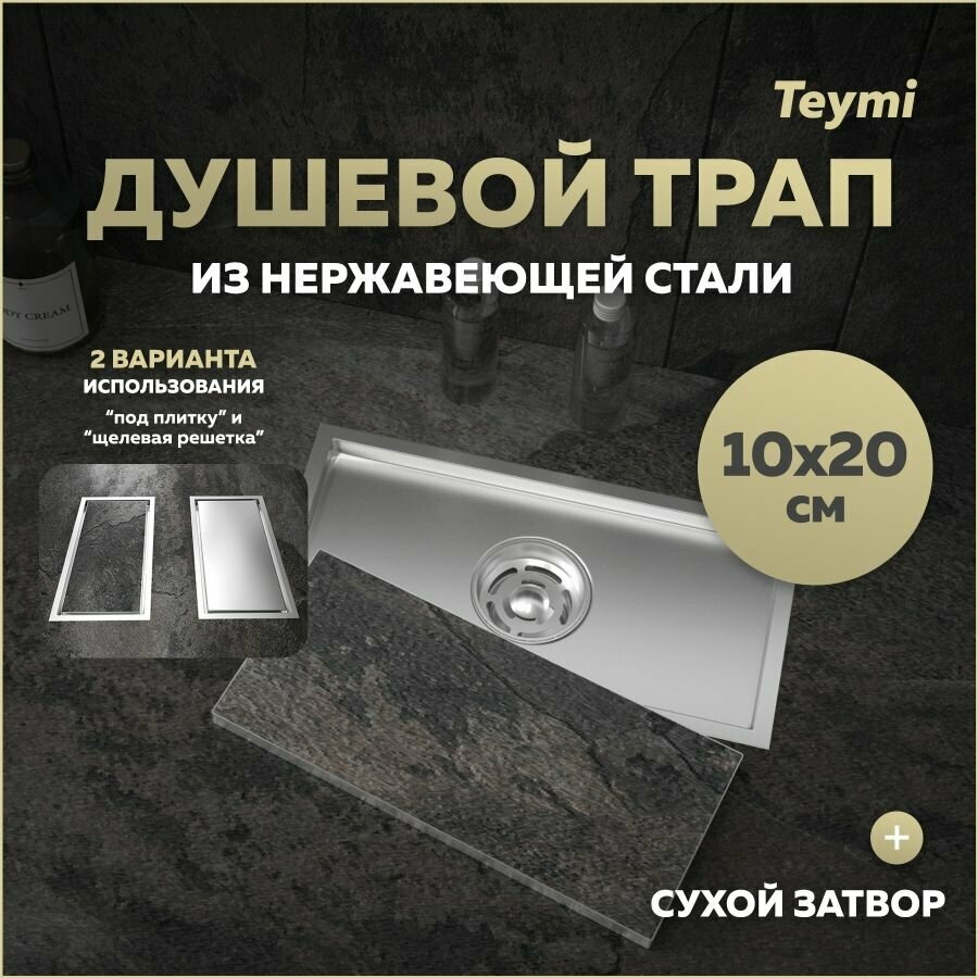 Купить Трап для душа под плитку с сухим затвором вертикальный выпуск Teymi Aina 10х20 нержавеющая сталь T90351