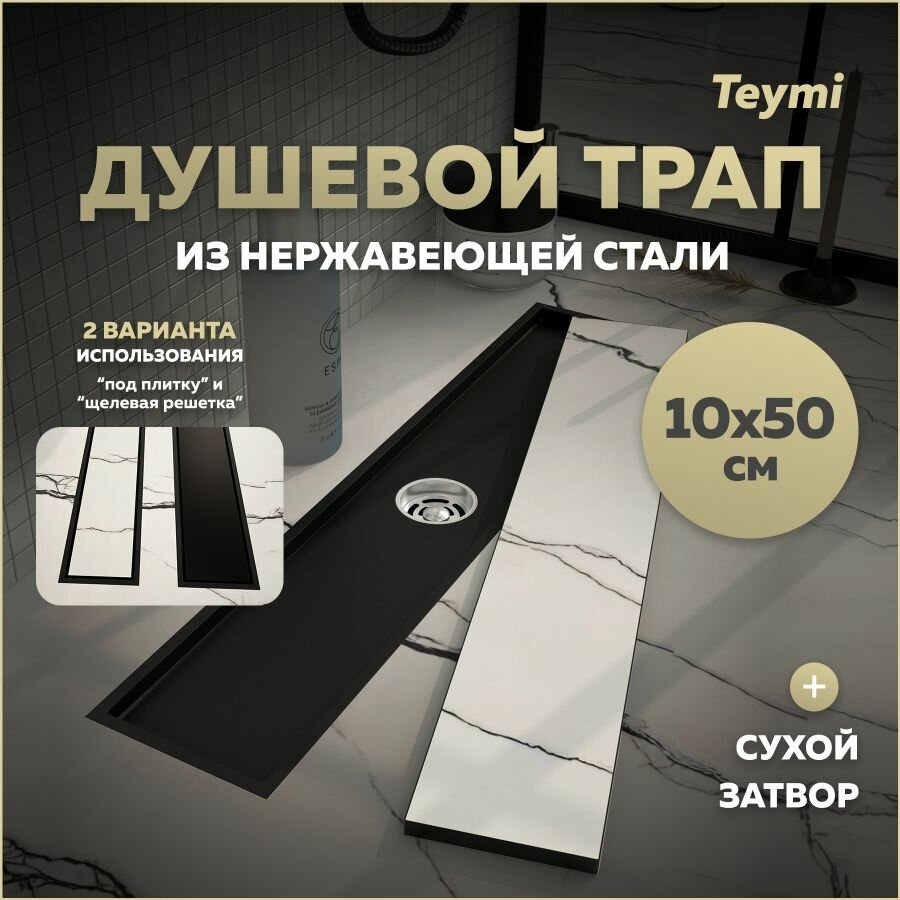Купить Трап для душа под плитку с сухим затвором вертикальный выпуск Teymi Aina 10х50 черный T90356