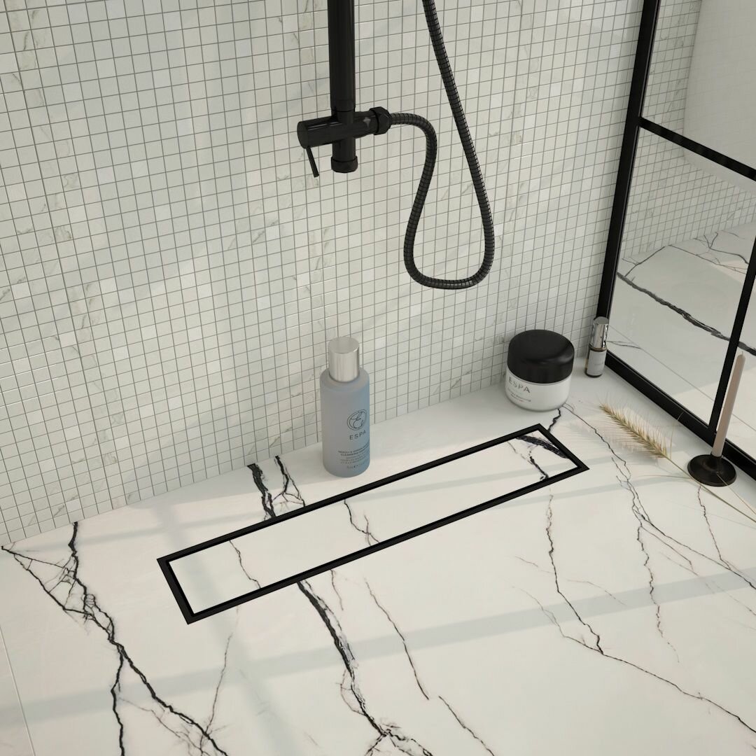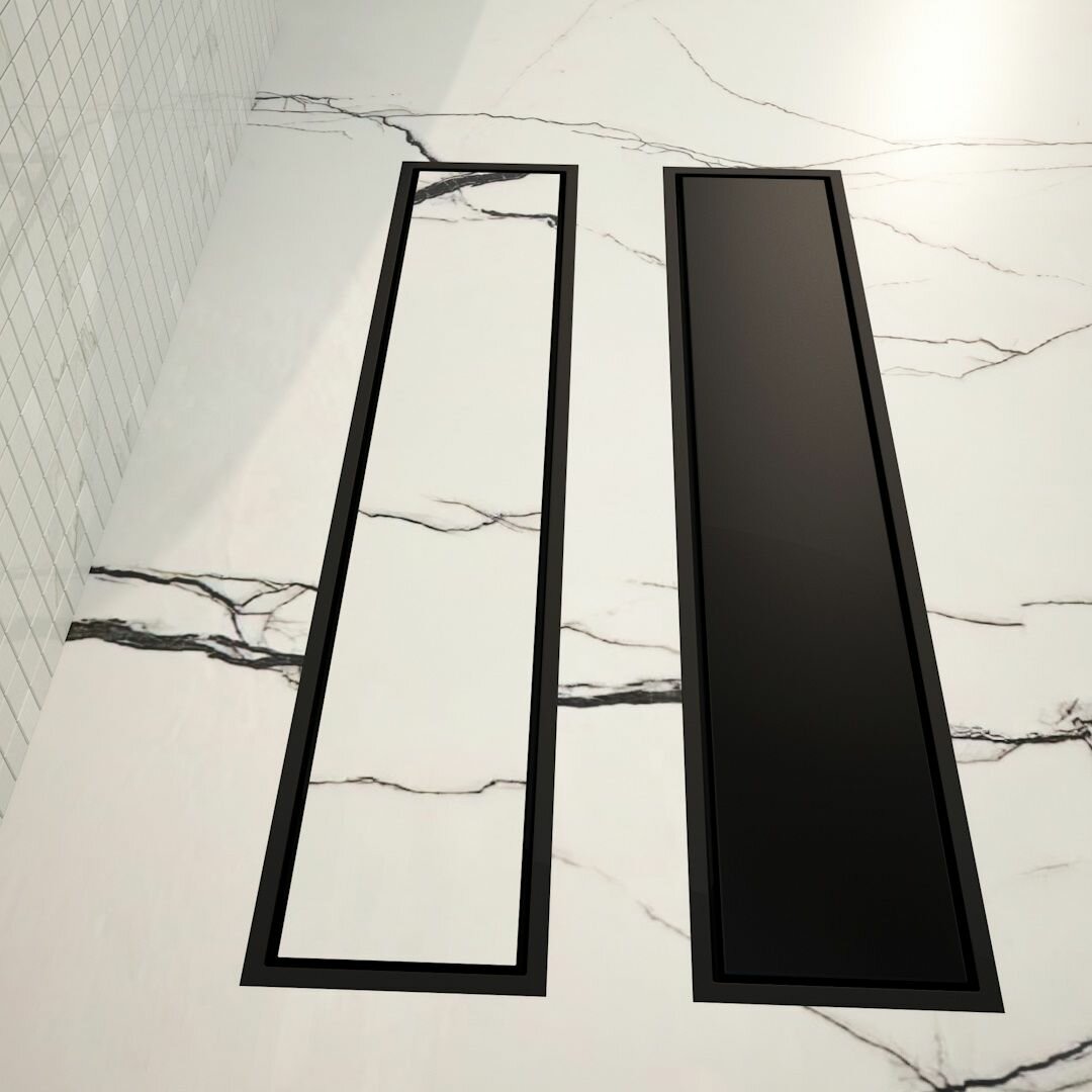 Трап для душа под плитку с сухим затвором вертикальный выпуск Teymi Aina 10х60 черный T90358