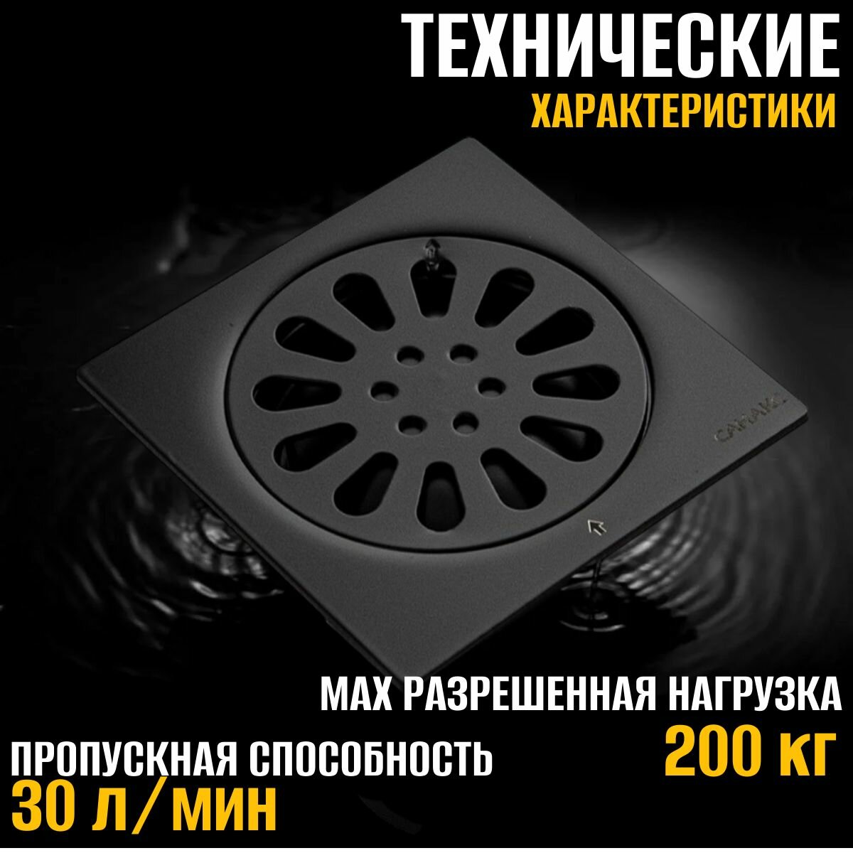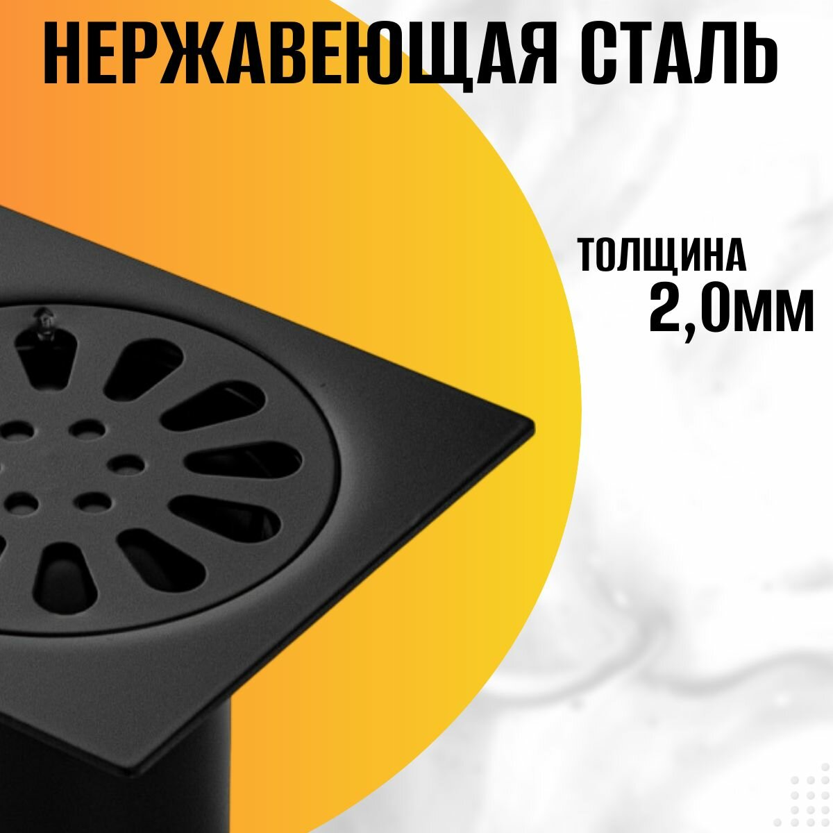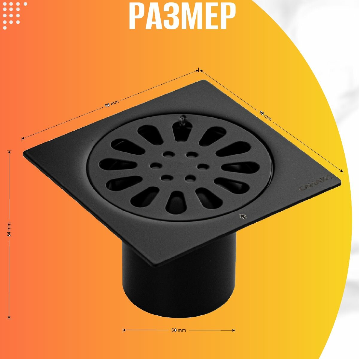 Трап 100 х 100 мм, выход 50 мм вертикальный, перфорированная крышка, из нержавеющей стали, с гидрозатвором, цвет черный интересное: