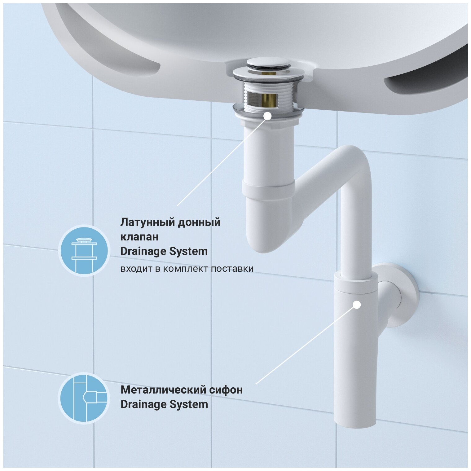 Сифон для раковины Wellsee Drainage System 182108002 в наборе 2 в 1: металлический сифон и донный клапан с переливом в цвете матовый белый