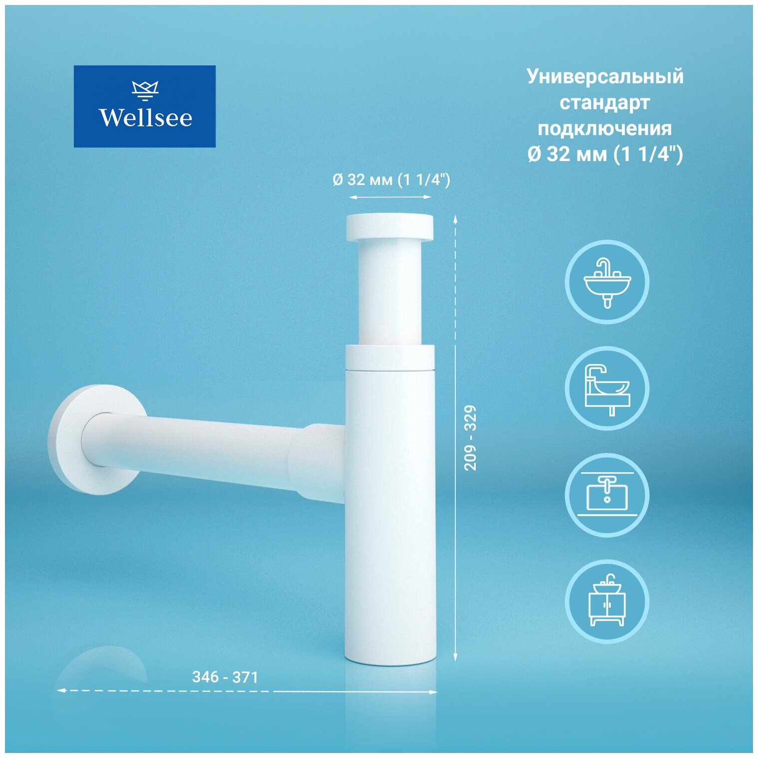 СохранитьСифон для раковины Wellsee Drainage System 182123003 в наборе 2 в 1: металлический сифон и универсальный донный клапан в цвете матовый белый интересное: