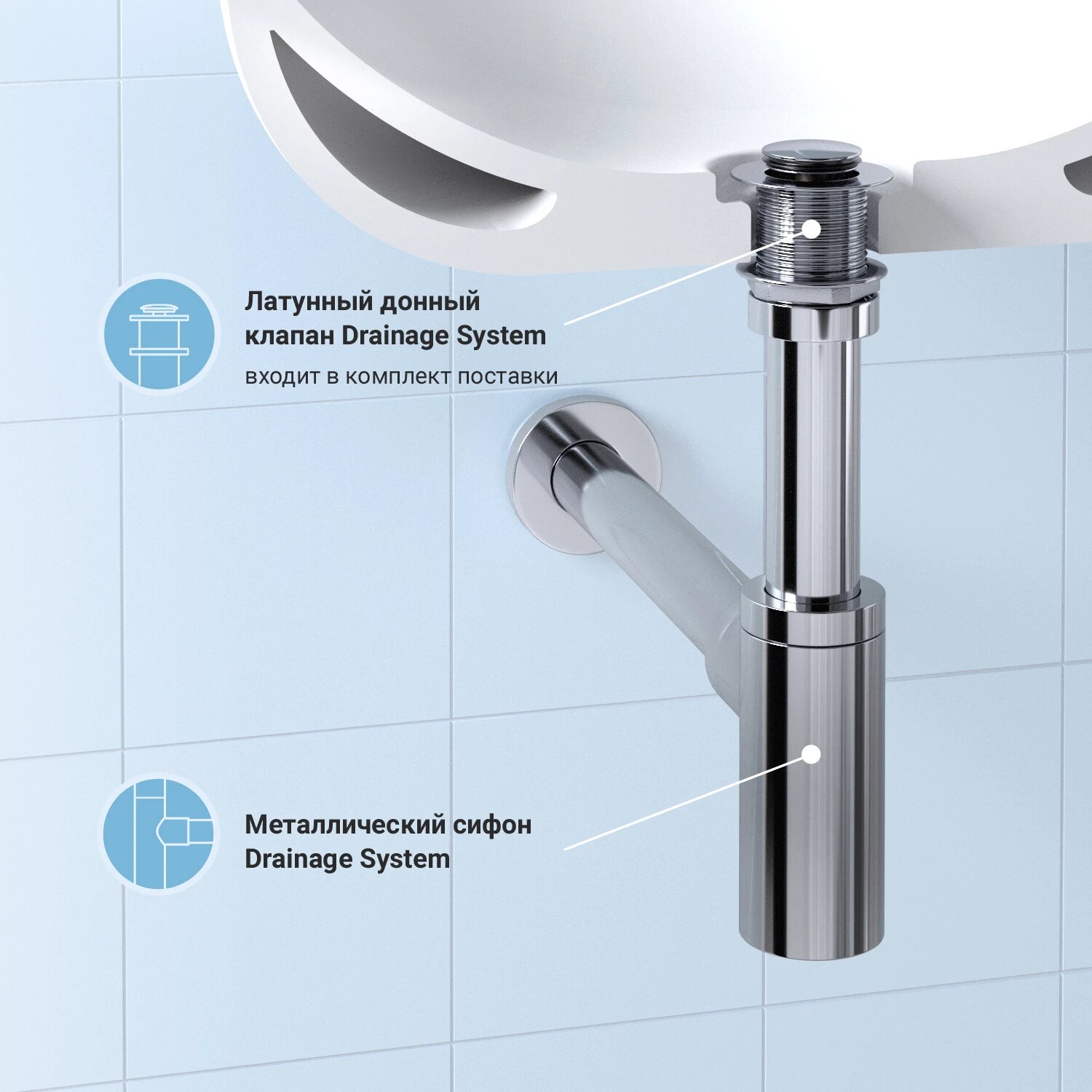 Сифон для раковины Wellsee Drainage System 182128001 в наборе 2 в 1: металлический сифон и донный клапан с переливом в цвете матовый белый