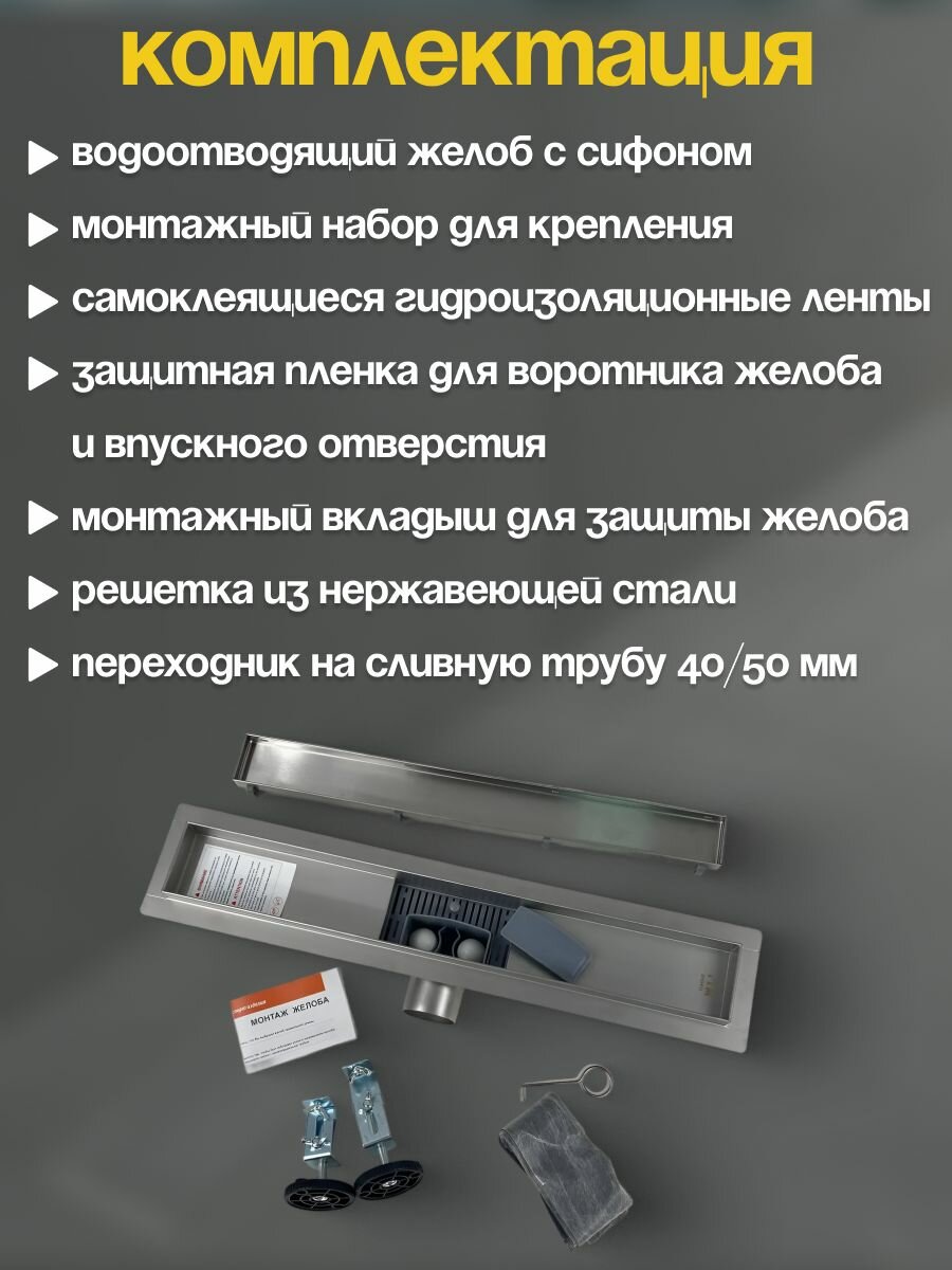 Купить Трап для душа под плитку, лоток с горизонтальным выпуском из нержавеющей стали TIM 70х400мм с сухим и гидрозатвором TIM BAD454002
