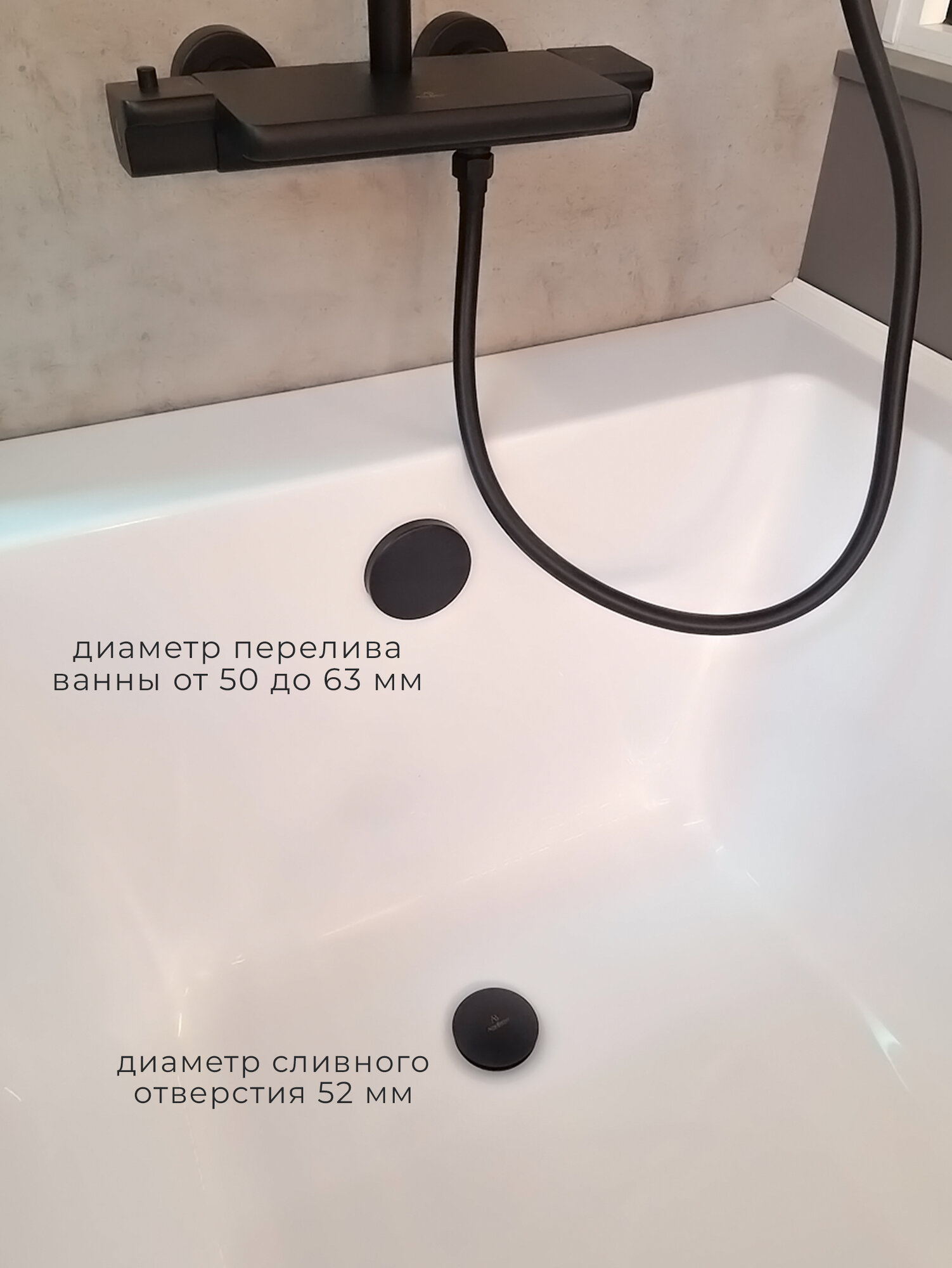 Купить Слив перелив для ванны автомат, клик - клак, универсальный, черный