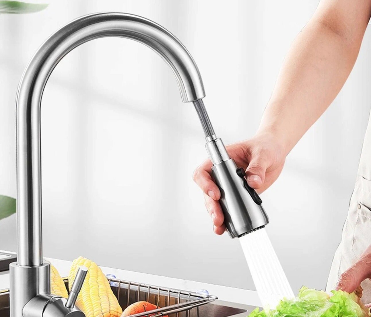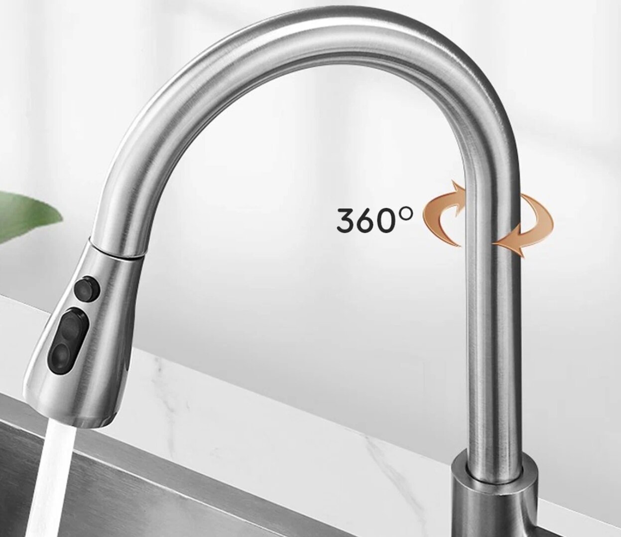 Купить Выдвижной смеситель, нержавеющая сталь, гибкий излив, поворотный, аэратор