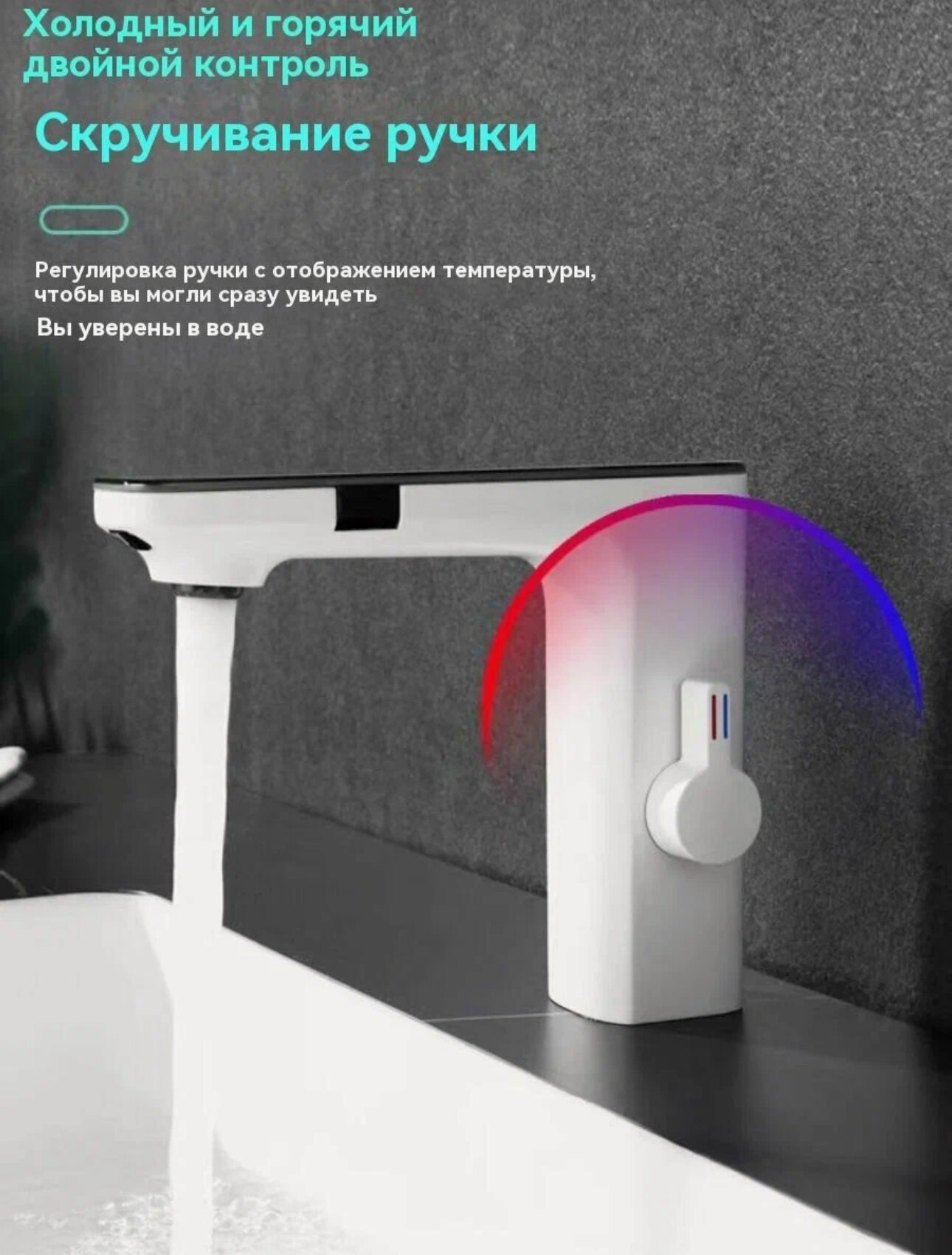 Смеситель для раковины с термостатом и с датчиком температуры и подсветкой белый сенсорный интересное: