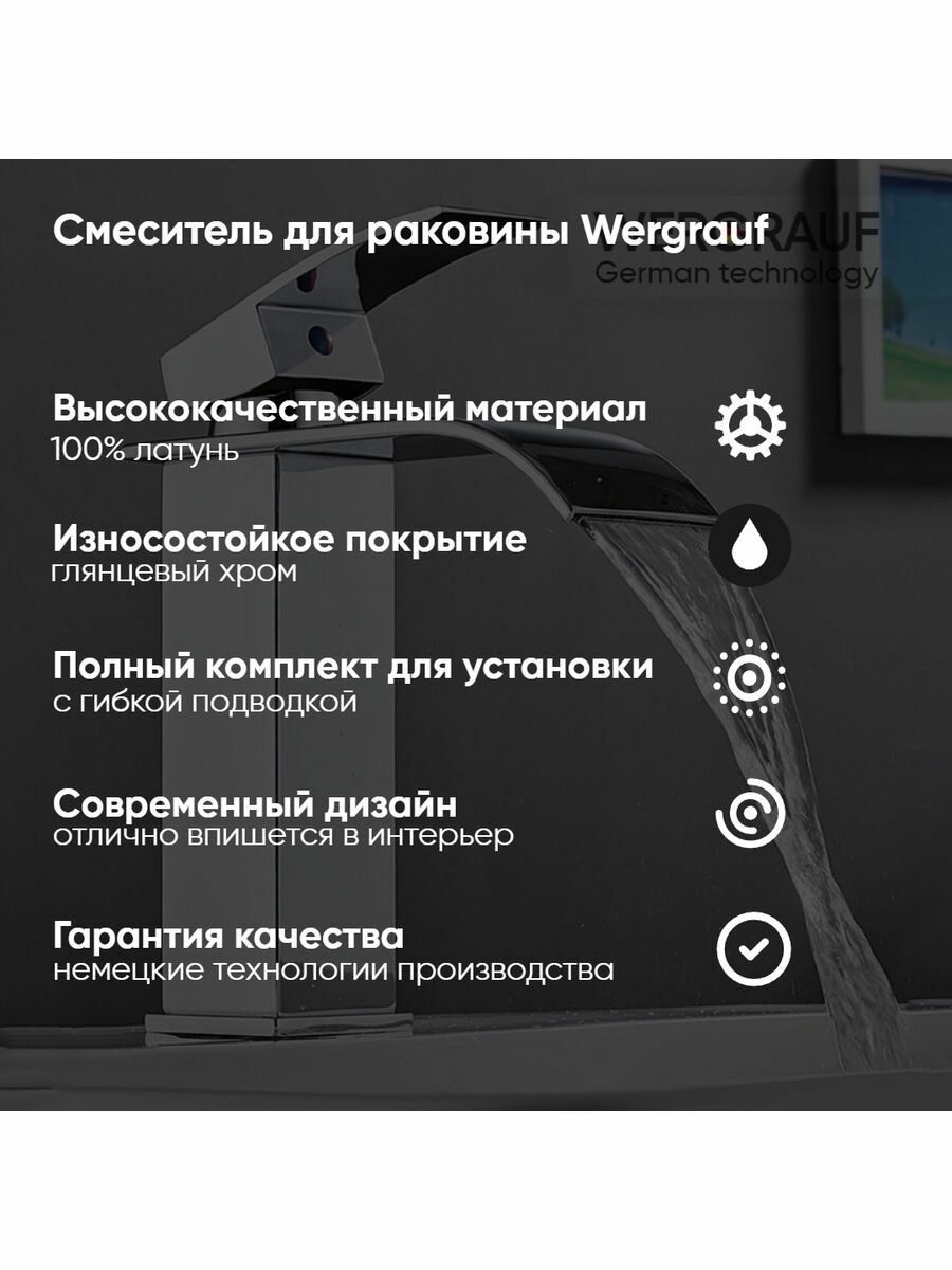 Смеситель для раковины Wergrauf FB-02CH Водопад низкий цвет хром интересное: