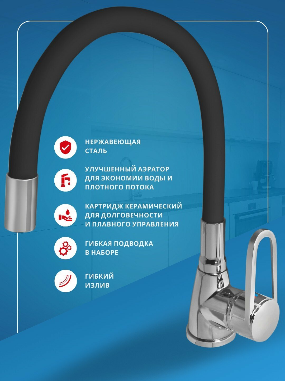 Смеситель для кухни, гибкий излив, цвет черный интересное: