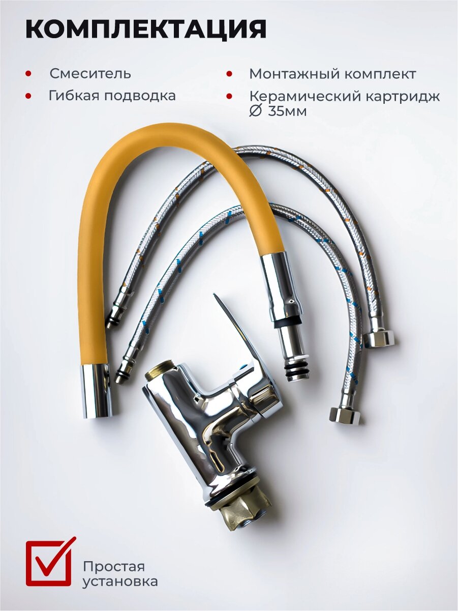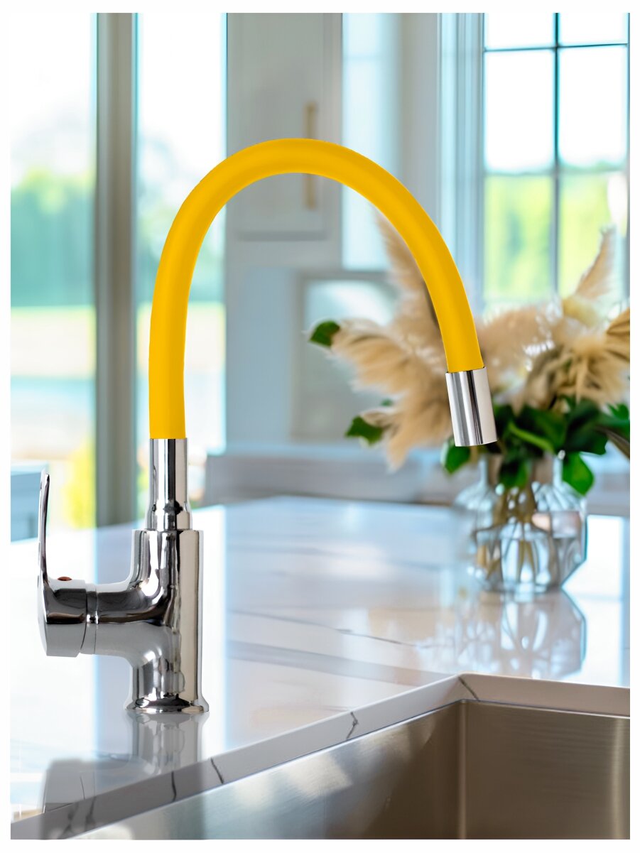 Смеситель для кухни, гибкий излив, цвет желтый интересное: