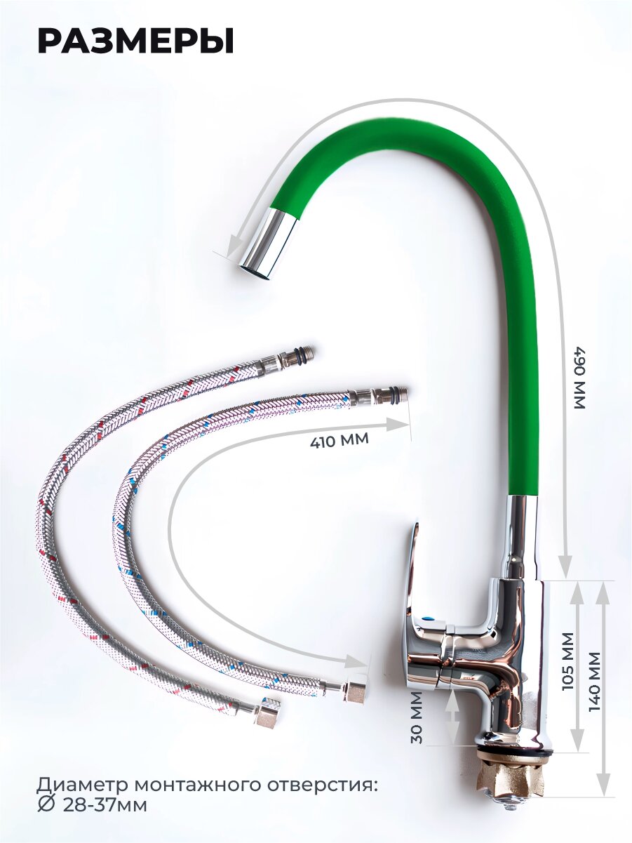 Смеситель для кухни, гибкий излив, цвет зеленый интересное: