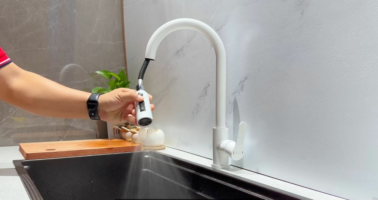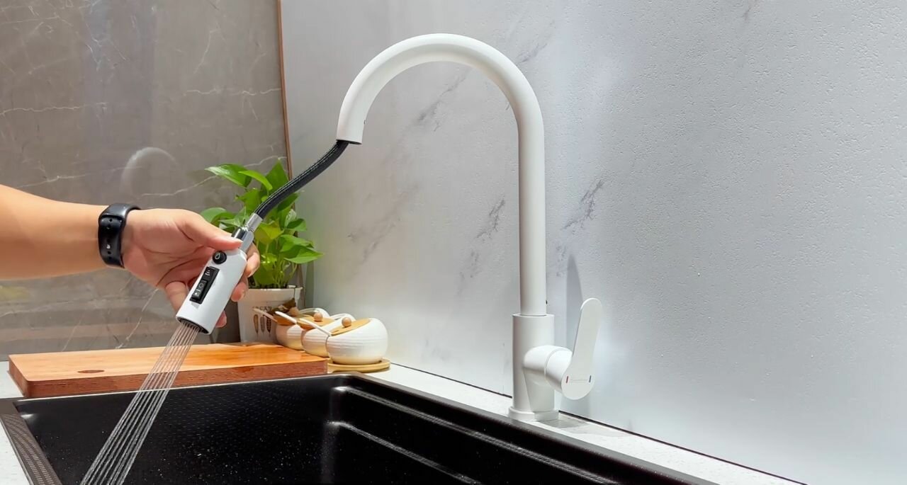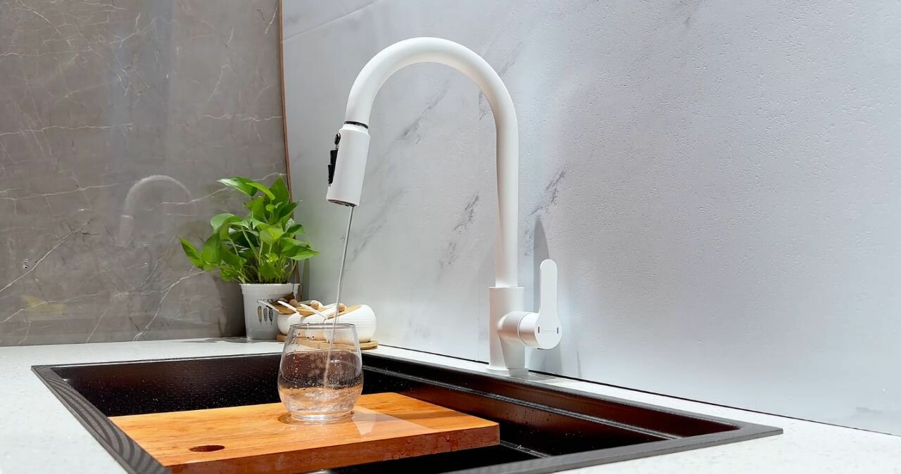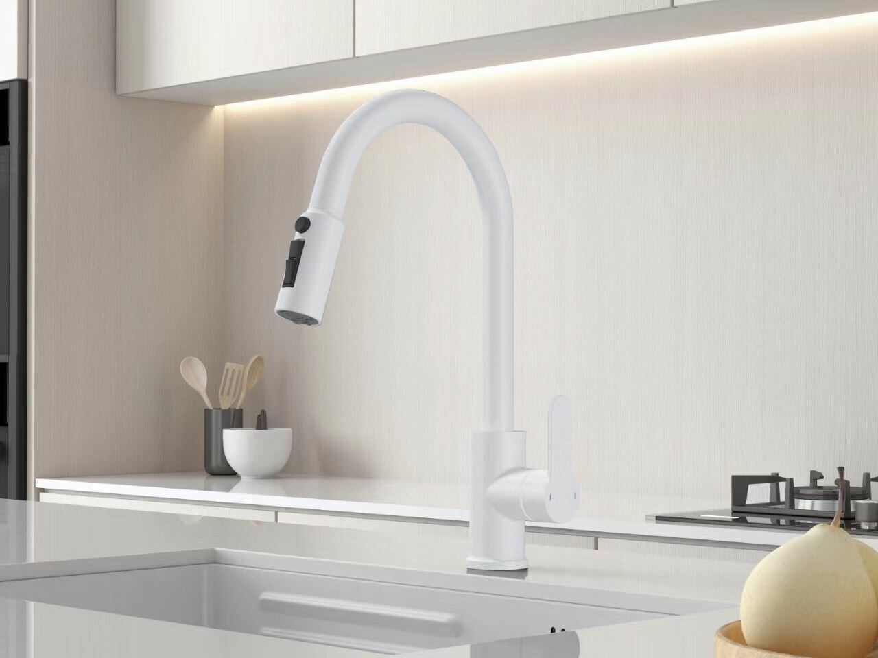 Смеситель для кухни с выдвижной лейкой Grandezza Segreto White ML24W подключением фильтра питьевой воды (Белый) интересное: