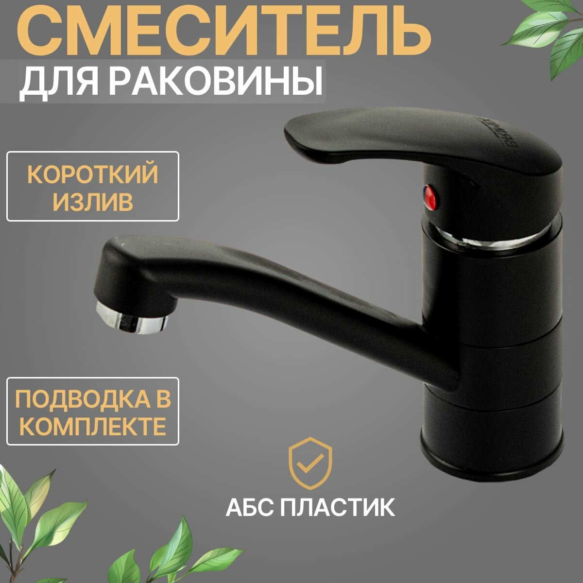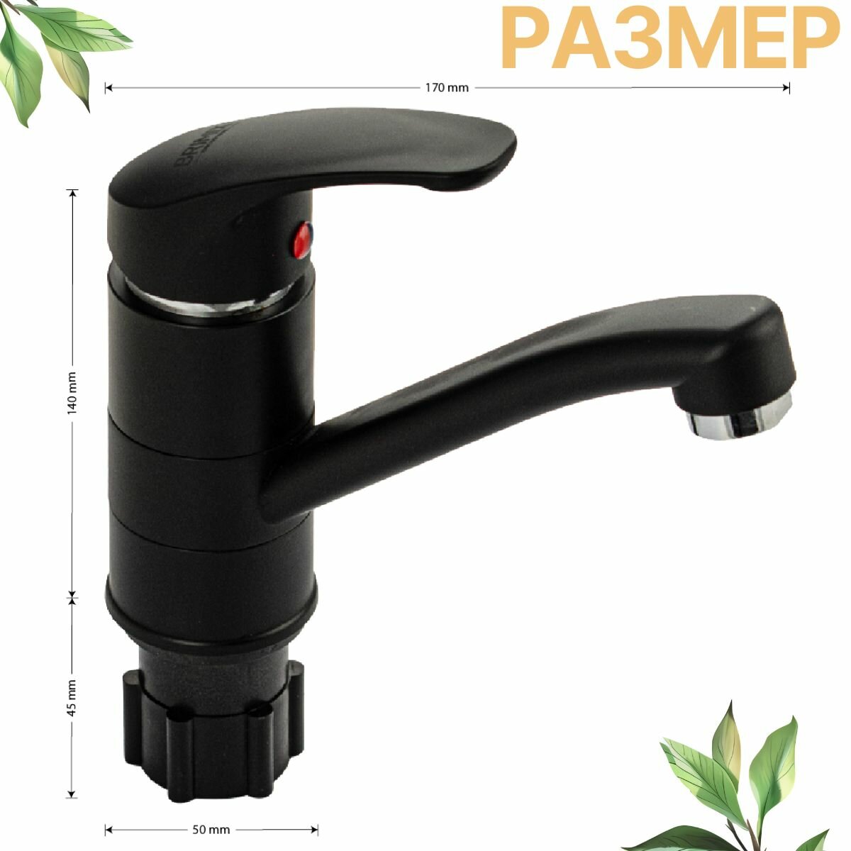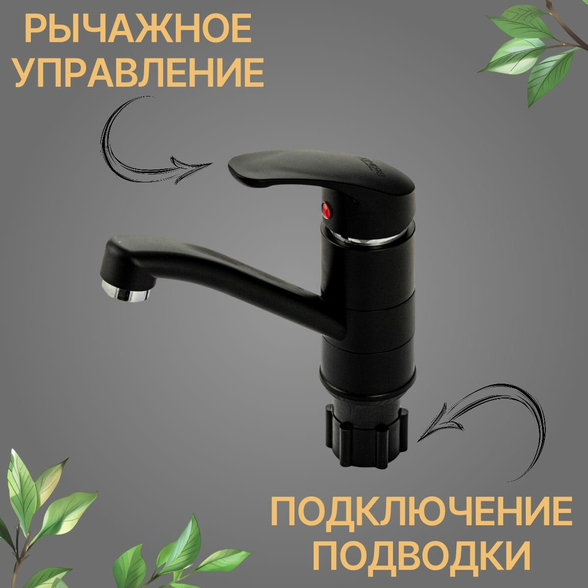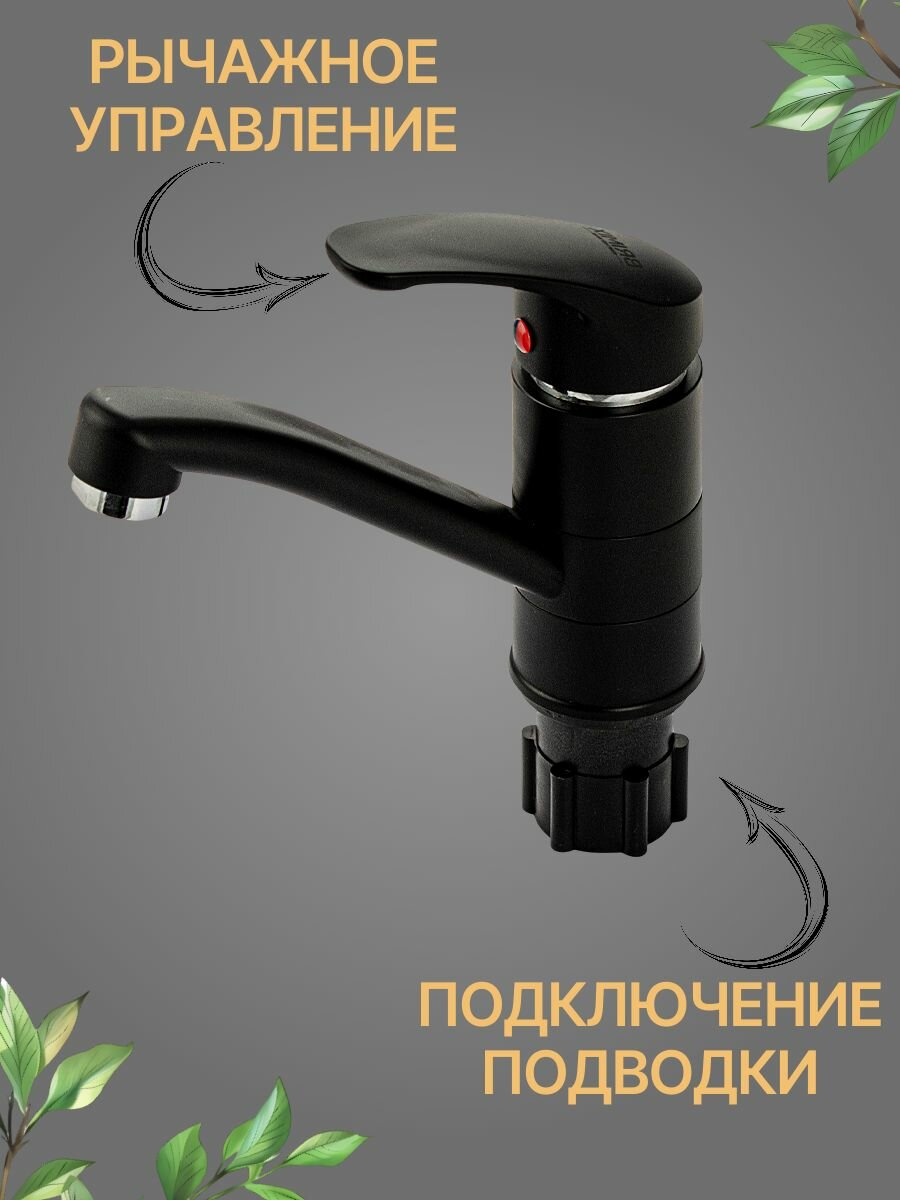 Смеситель для раковины, кухонной мойки шаровый, с поворотным изливом, из высокопрочного АБС пластика, цвет черный . интересное: