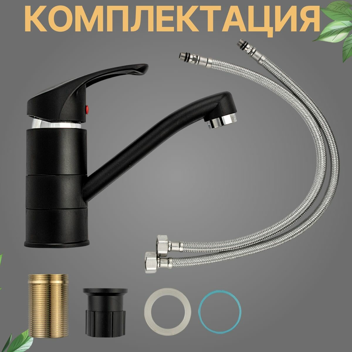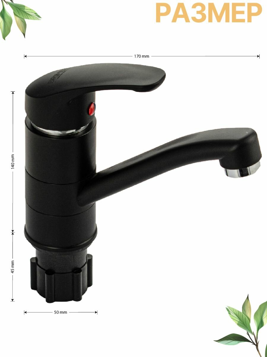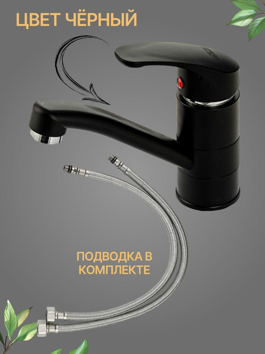 Смеситель для раковины, кухонной мойки шаровый, с поворотным изливом, из высокопрочного АБС пластика, цвет черный . интересное: