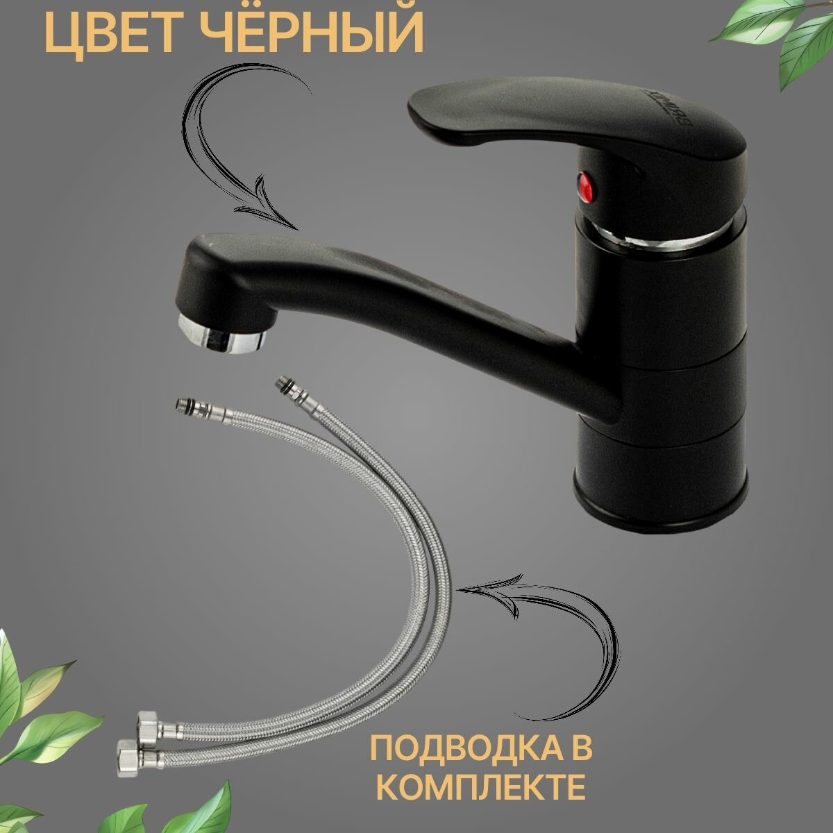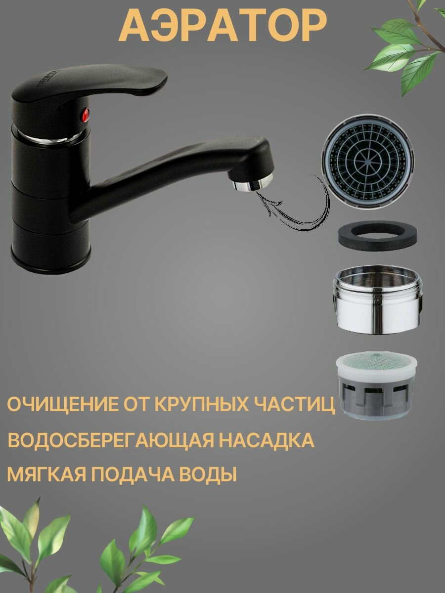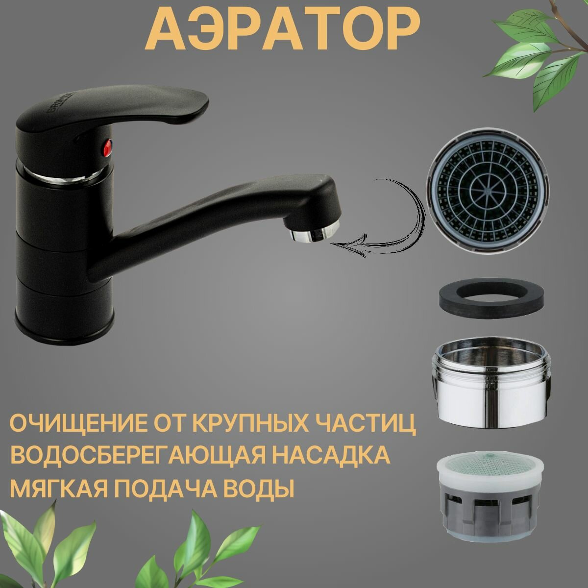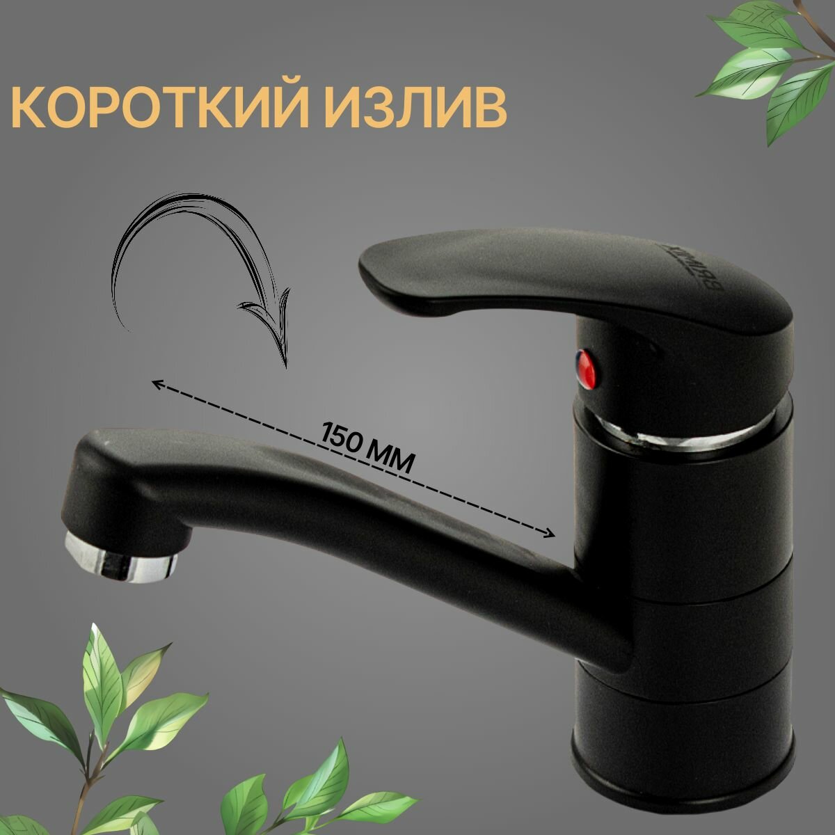 Смеситель для раковины, кухонной мойки шаровый, с поворотным изливом, из высокопрочного АБС пластика, цвет черный . интересное: