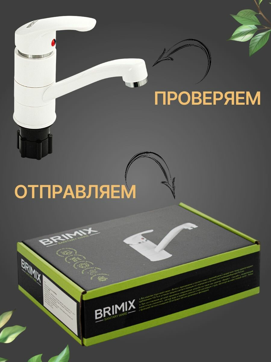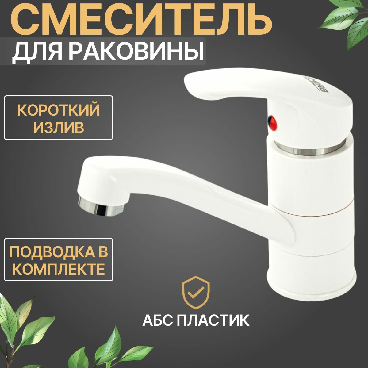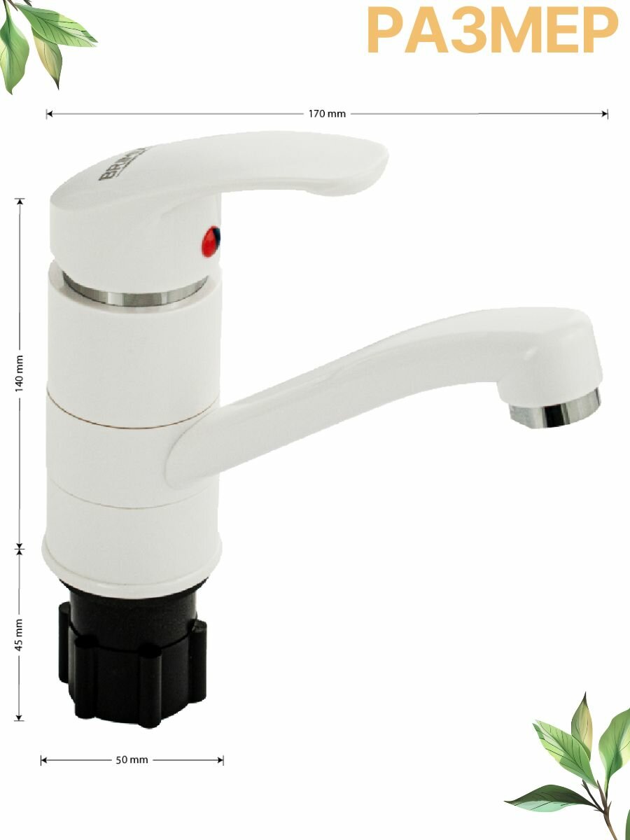 Смеситель для раковины, кухонной мойки шаровый, с поворотным изливом, из высокопрочного АБС пластика, цвет белый. интересное: