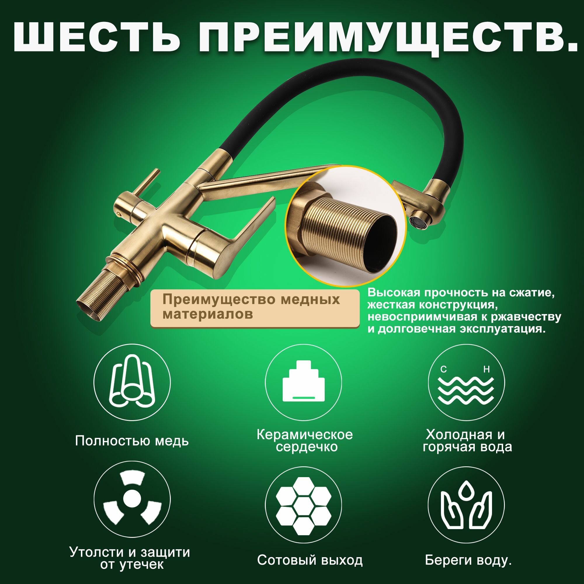СохранитьСмеситель для кухни, с фильтром для питьевой воды, кран для кухни, с гибким изливом, ванны, раковины в ванную, 2 в 1, матовое золото интересное: