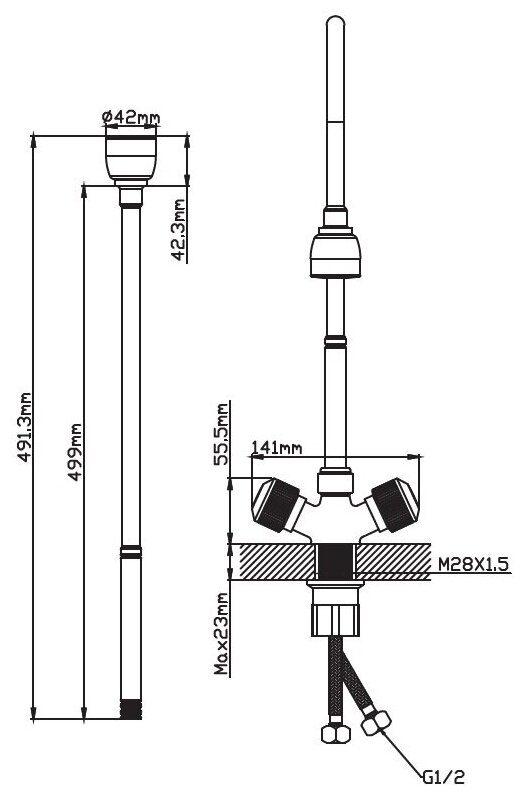 Гибкая подводка для воды из нержавеющей стали 1/2" 55см внутренняя-внутренняя резьба