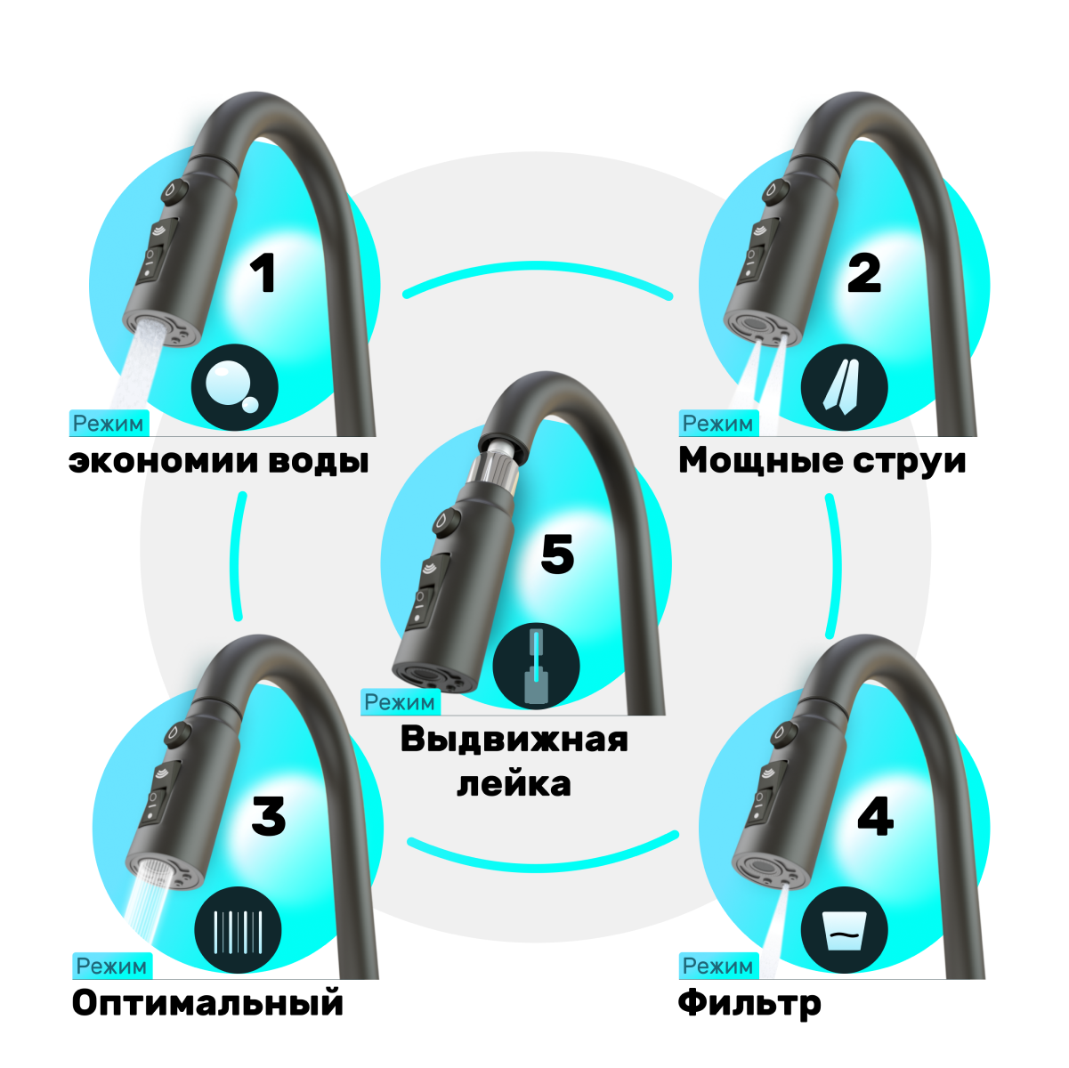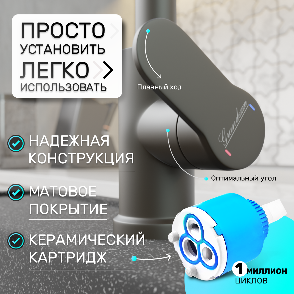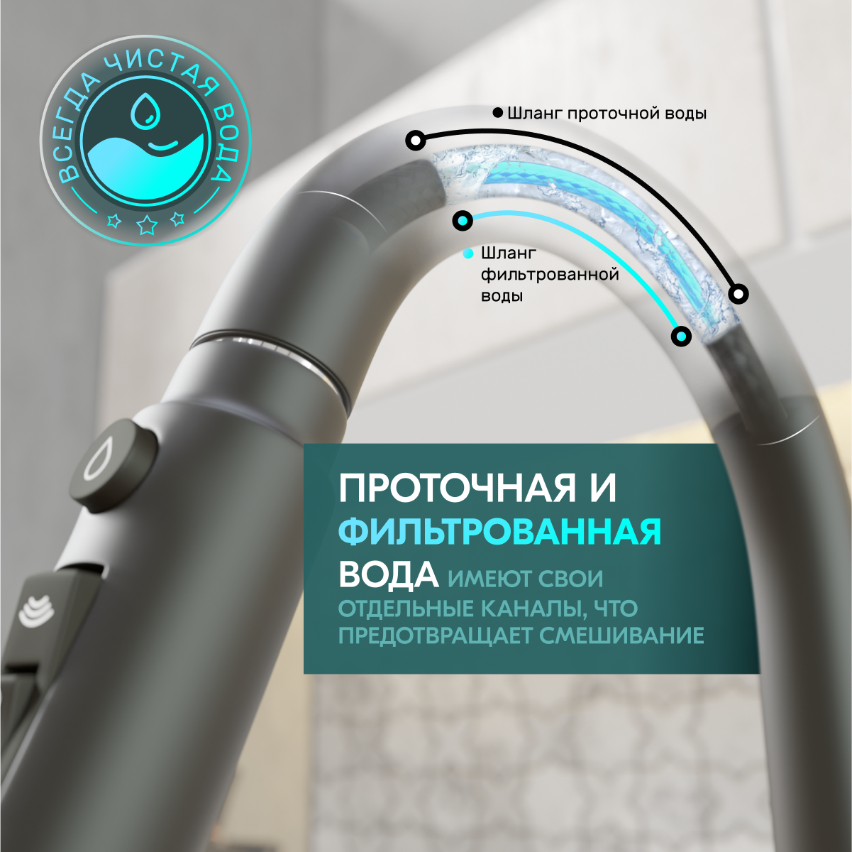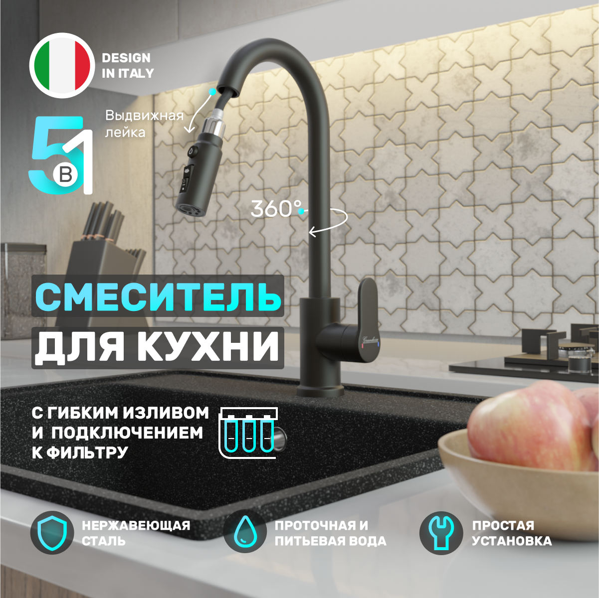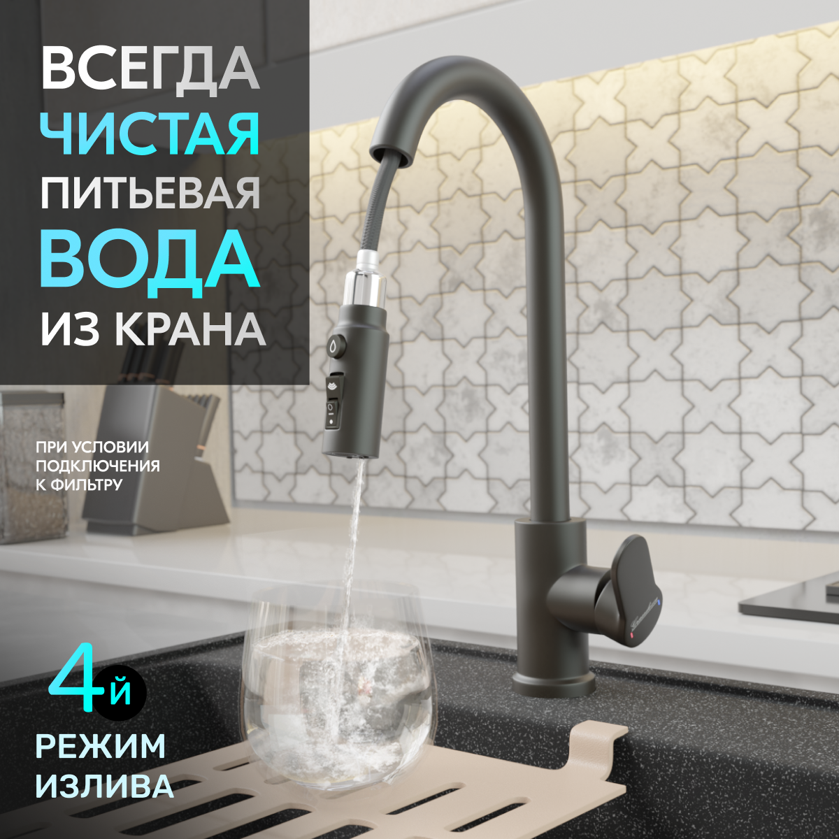 Смеситель для кухни с выдвижной лейкой Grandezza Segreto ML Gray ML24G подключением фильтра питьевой воды (Серый) интересное: