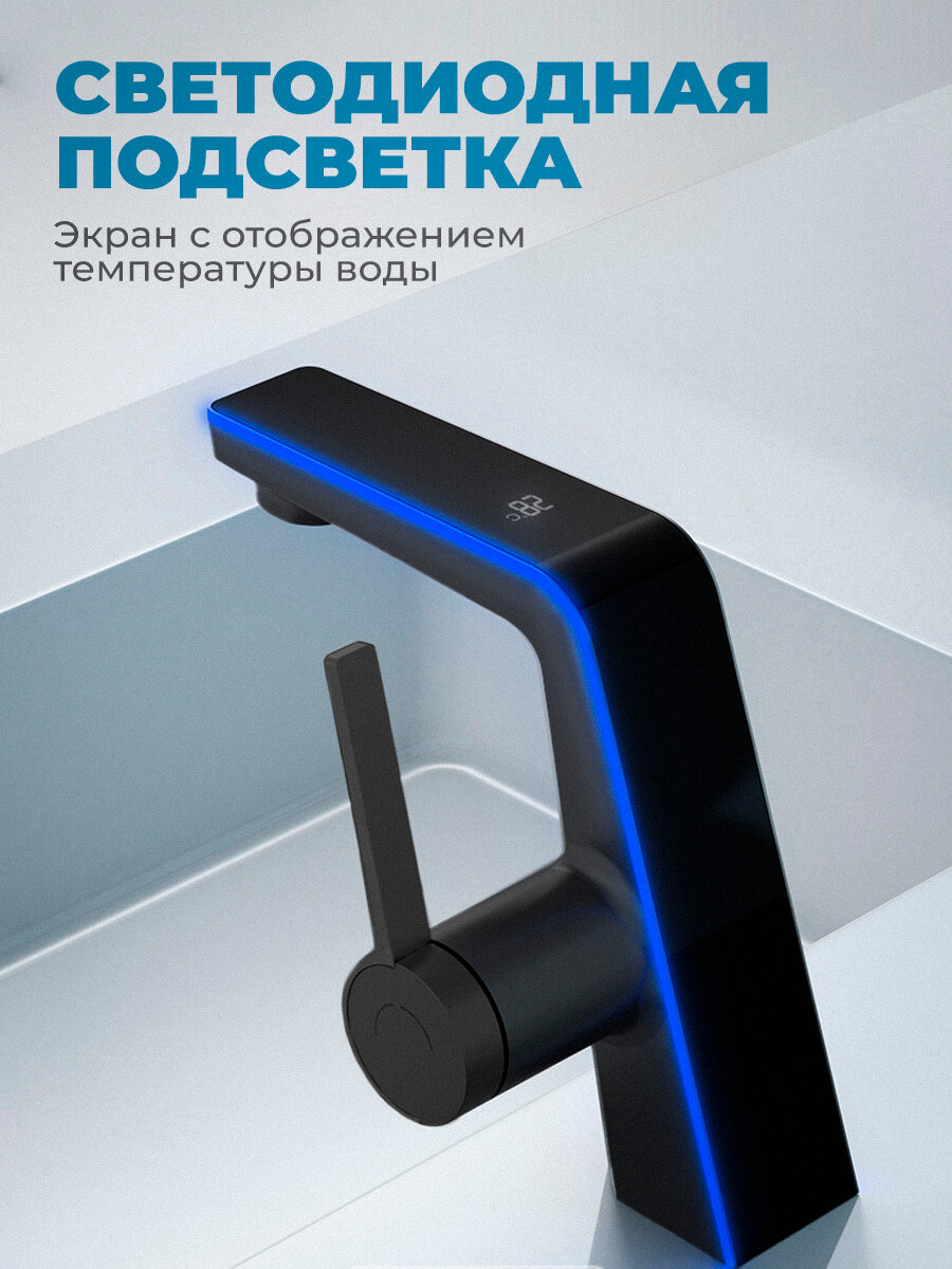 Смеситель для раковины с подсветкой Signature Edition FH3433 Black черный, кран для ванной из нержавеющей стали интересное: