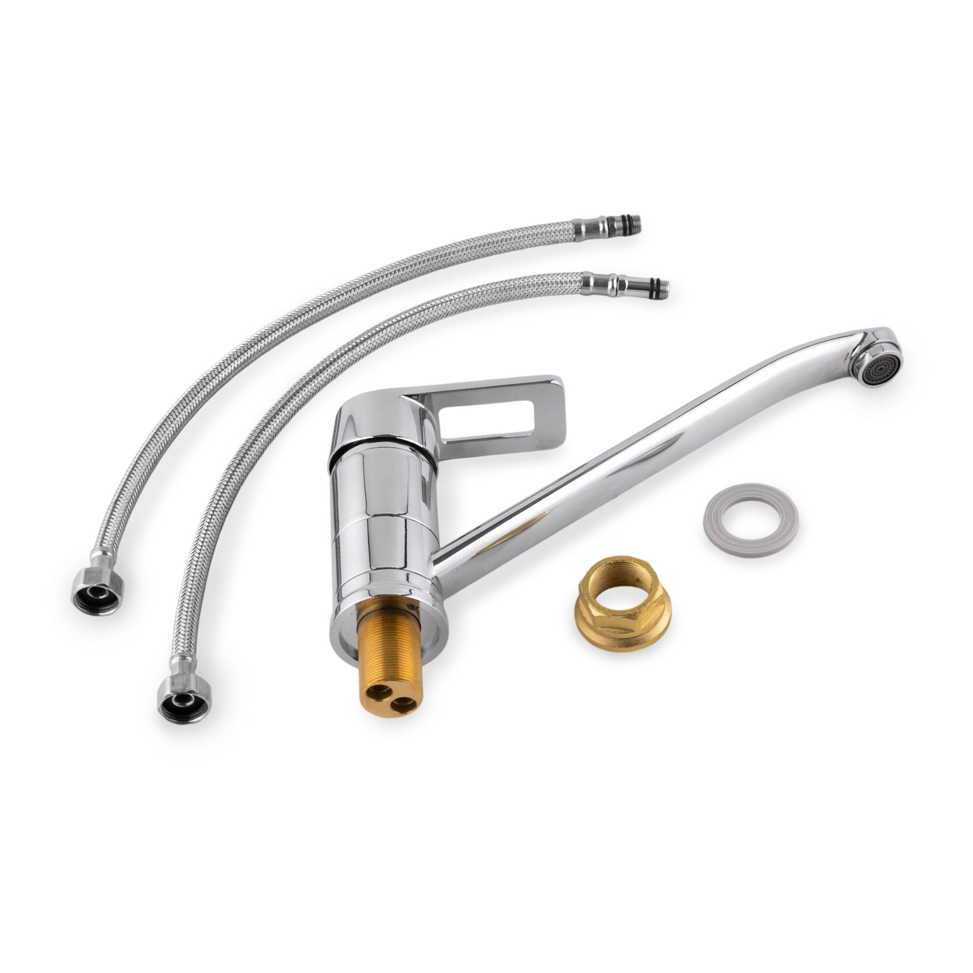 Купить Смеситель для кухни с длинным изливом и шаровой ручкой с прорезью, хромированный