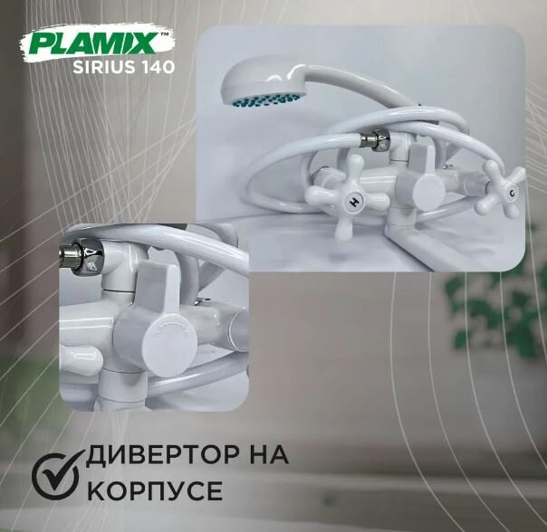 Смеситель двуручковый для ванны из термопластика Plamix Sirius-140 White (ABC высокопрочный) белый интересное: