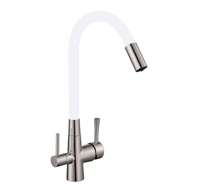Смеситель для кухни с гибким изливом под фильтр для питьевой воды , высокий, поворотный, белый, сатин интересное: