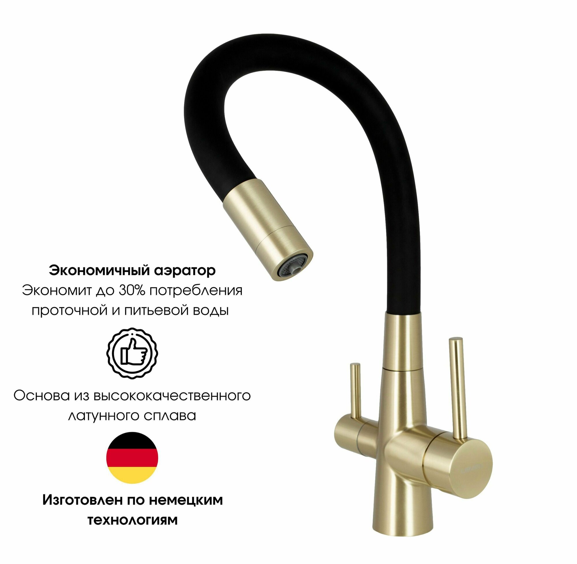 Смеситель для кухни с гибким изливом под фильтр для питьевой воды, высокий, поворотный 360 градусов, Lemen, латунь, черный, бронза интересное: