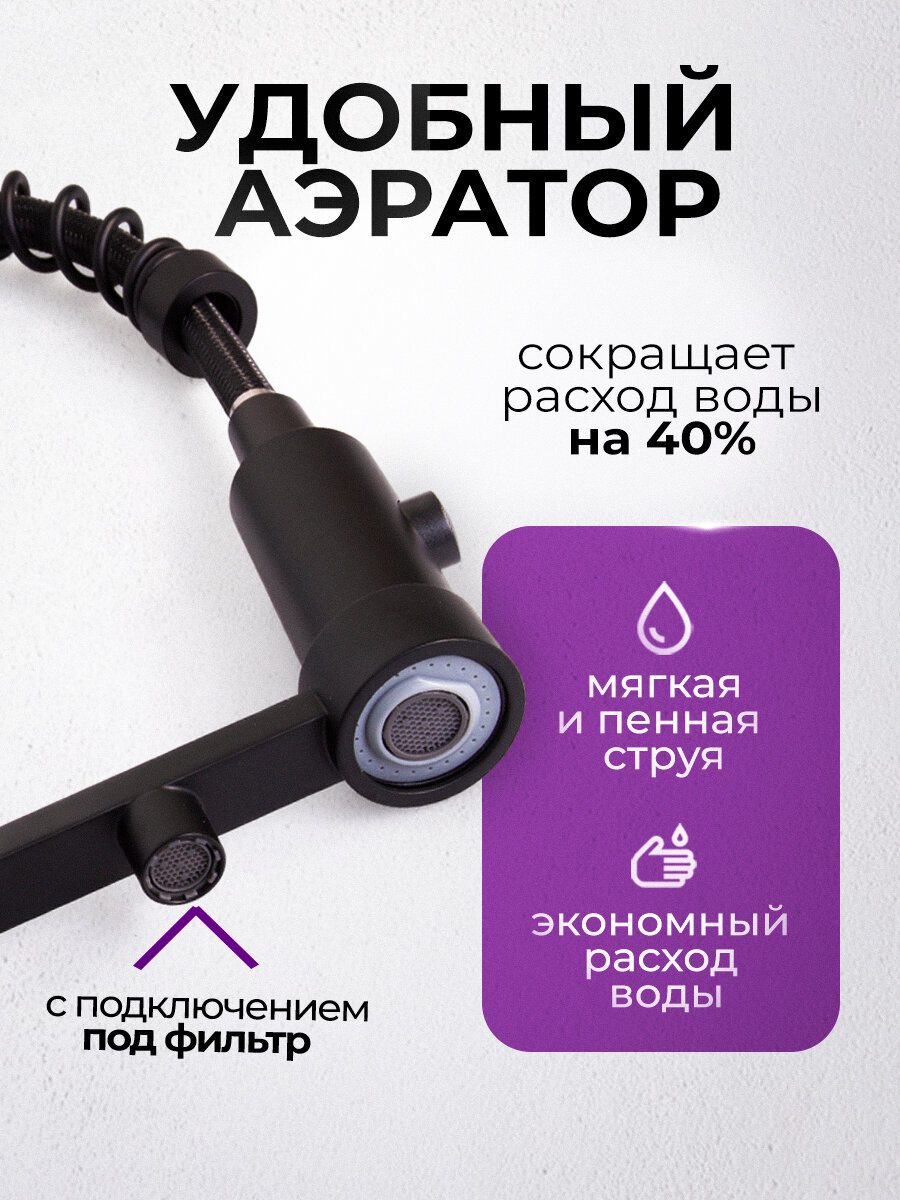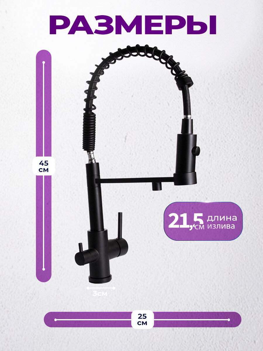 Купить Смеситель для кухни с фильтром Profusion Black черный матовый, кран для раковины с гибким изливом