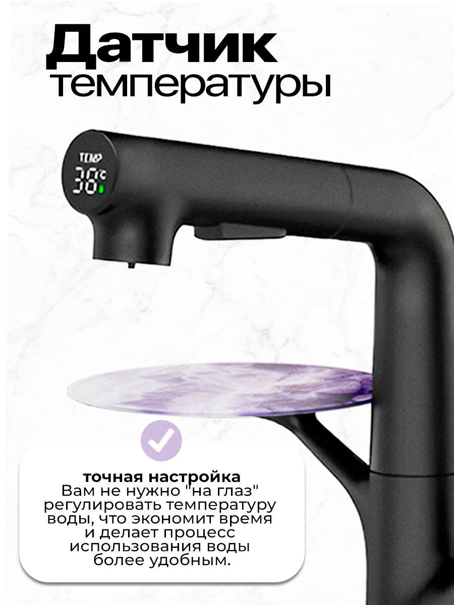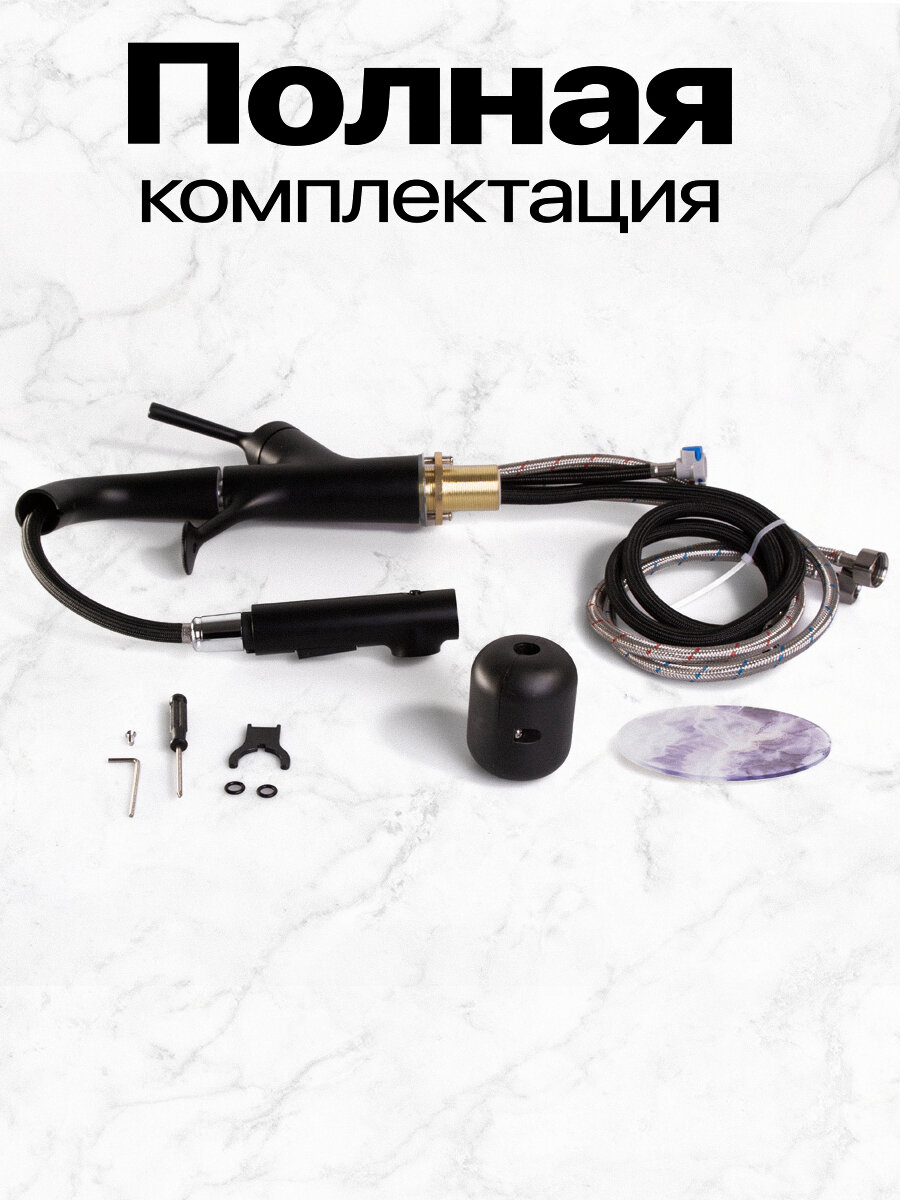 Смеситель для кухни с фильтром Profusion Black черный матовый, кран для раковины с гибким изливом