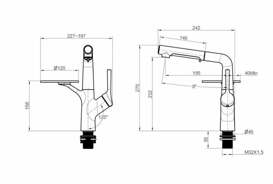 Смеситель для кухни с выдвижной лейкой Signature Edition FH3480 черный матовый, кухонный кран из нержавеющей стали