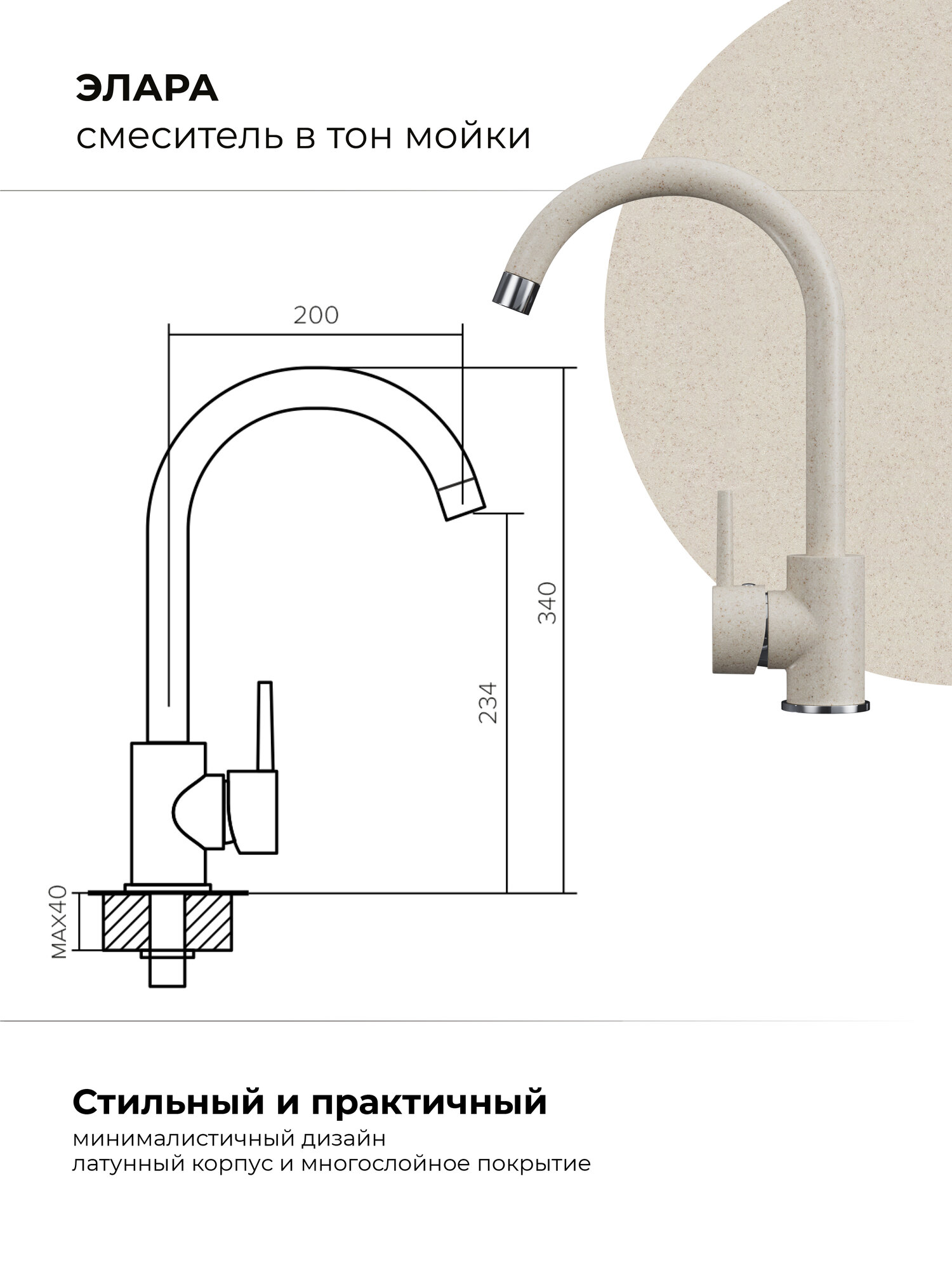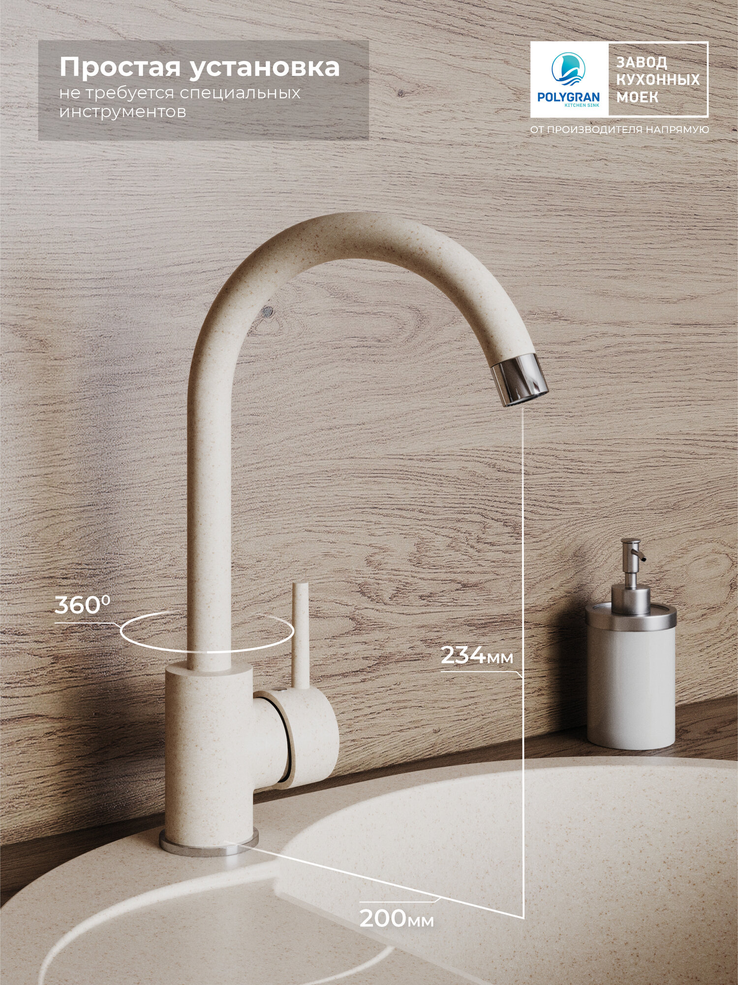СохранитьСмеситель для кухни / мойки Polygran Элара Бежевый (Кремовый) / Нержавеющая сталь / Кран для кухни интересное:
