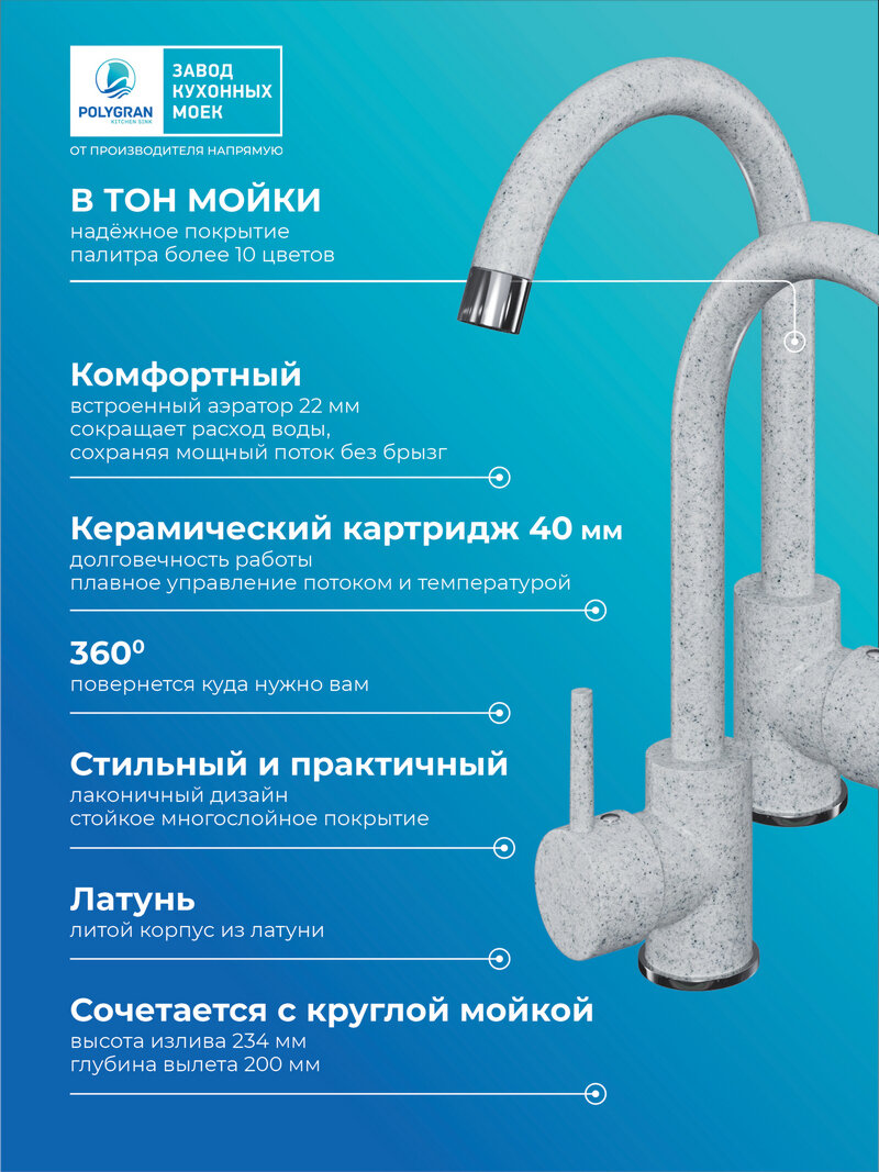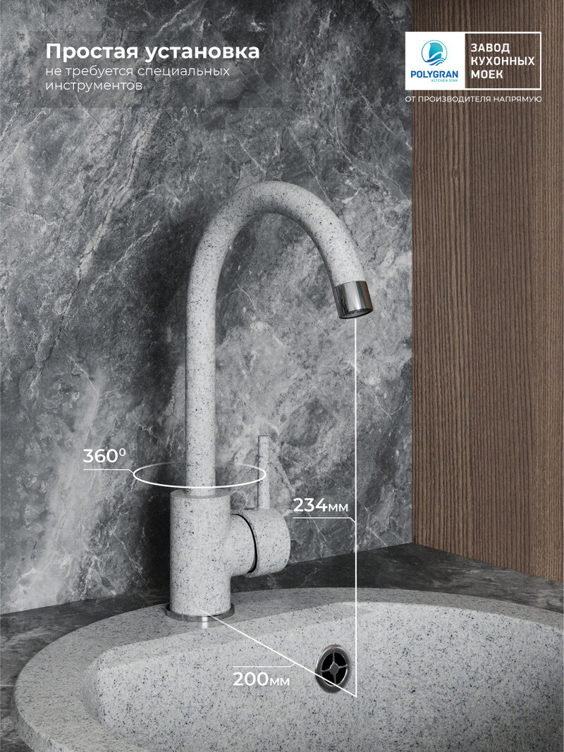 СохранитьСмеситель для кухни / мойки Polygran Элара Серый (Светло-серый №314) / Латунный / Кран для кухни интересное: